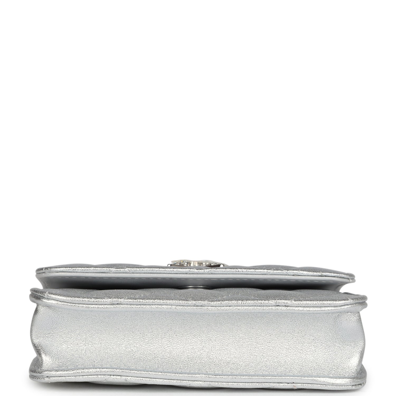 Chanel Crystal CC Walk Of Fame Clutch Wallet Silver Metallic Goatskin Silver Hardware