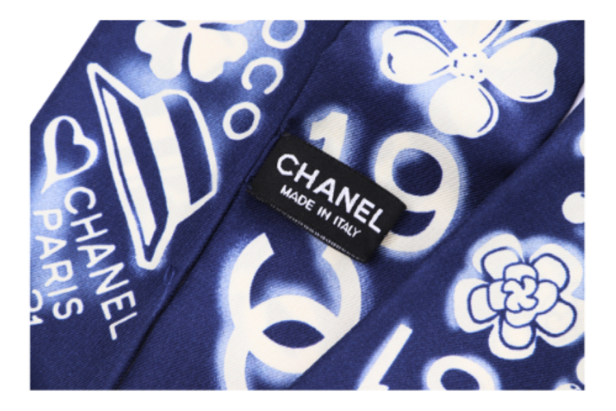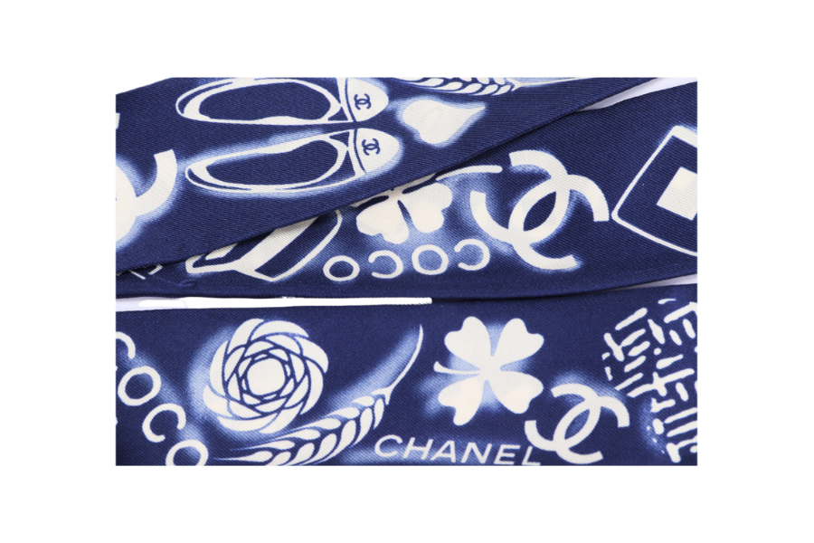 CHANEL DARK BLUE SILK TWILLY, WITH BOX