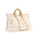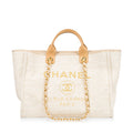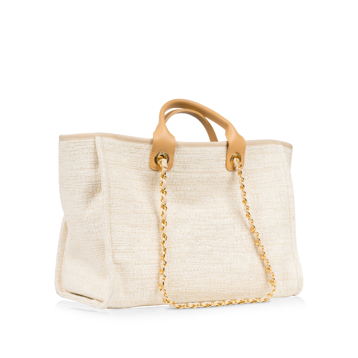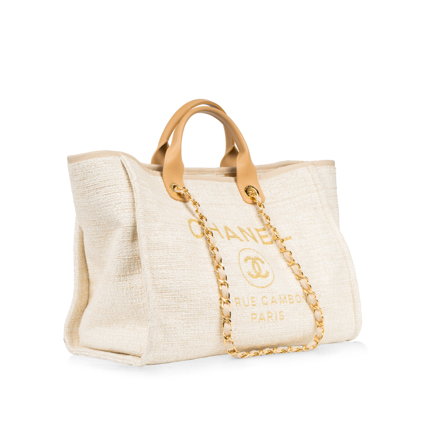 Don't worry girls, we had the same reaction in case you're wondering if you're the only one with their jaw on the floor. Yes, this bag is real and yes, it is for sale - and to say we're obsessed would be an understatement. Carefully crafted from luxurious beige and white tweed, the Chanel Deauville handbag is just...beyond stunning, to say the very least. Accentuated by gold tone hardware and prominent glittery gold writing, this iconic bag is basically the holy grail of luxury totes. Spacious enough to hold literally everything one would need throughout their day, the Deauville is suitable for travelling, a day at the beach or just basic daily usage. Need to carry your laptop and papers with you to work? The Deauville can easily hold it. Your textbooks for all you international students? No problem. Your dog? Your toddler? Your husband when you don't feel like dealing with him anymore? Girl, go ahead. Jokes aside, the Deauville is an absolute must-have for any woman with a love for luxury and a lot to carry. Always sleek, always stylish and always glamorous, invest in the Chanel Deauville now.