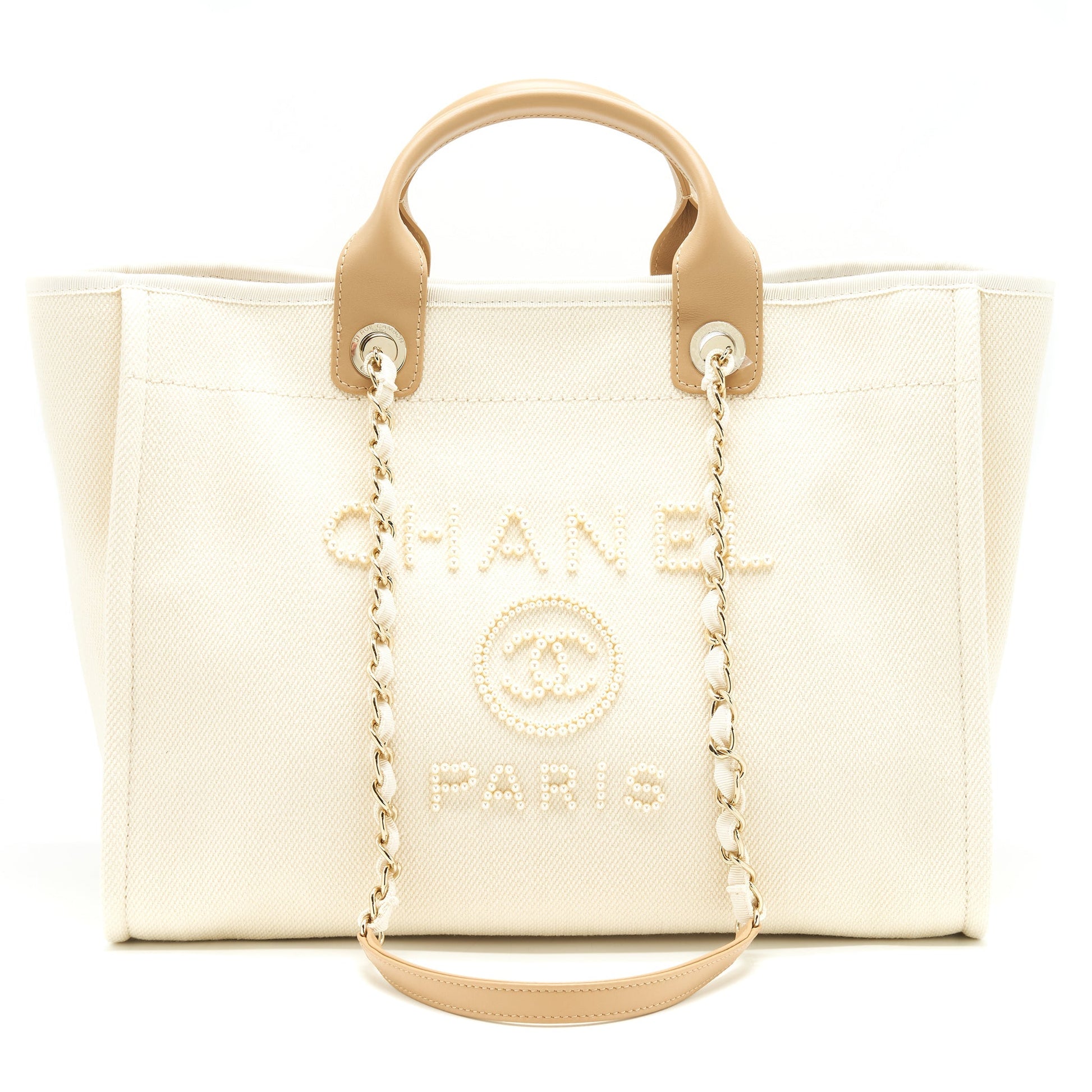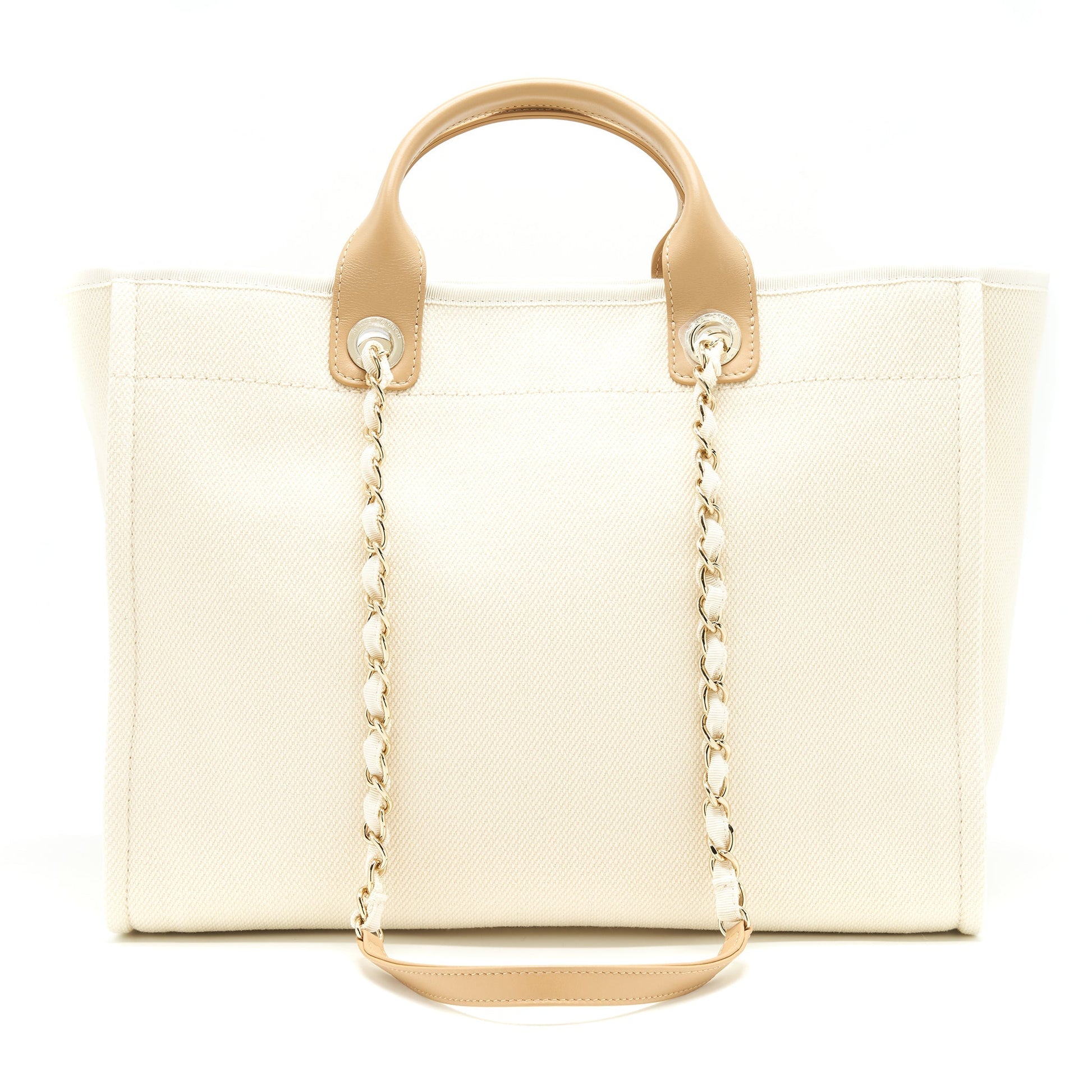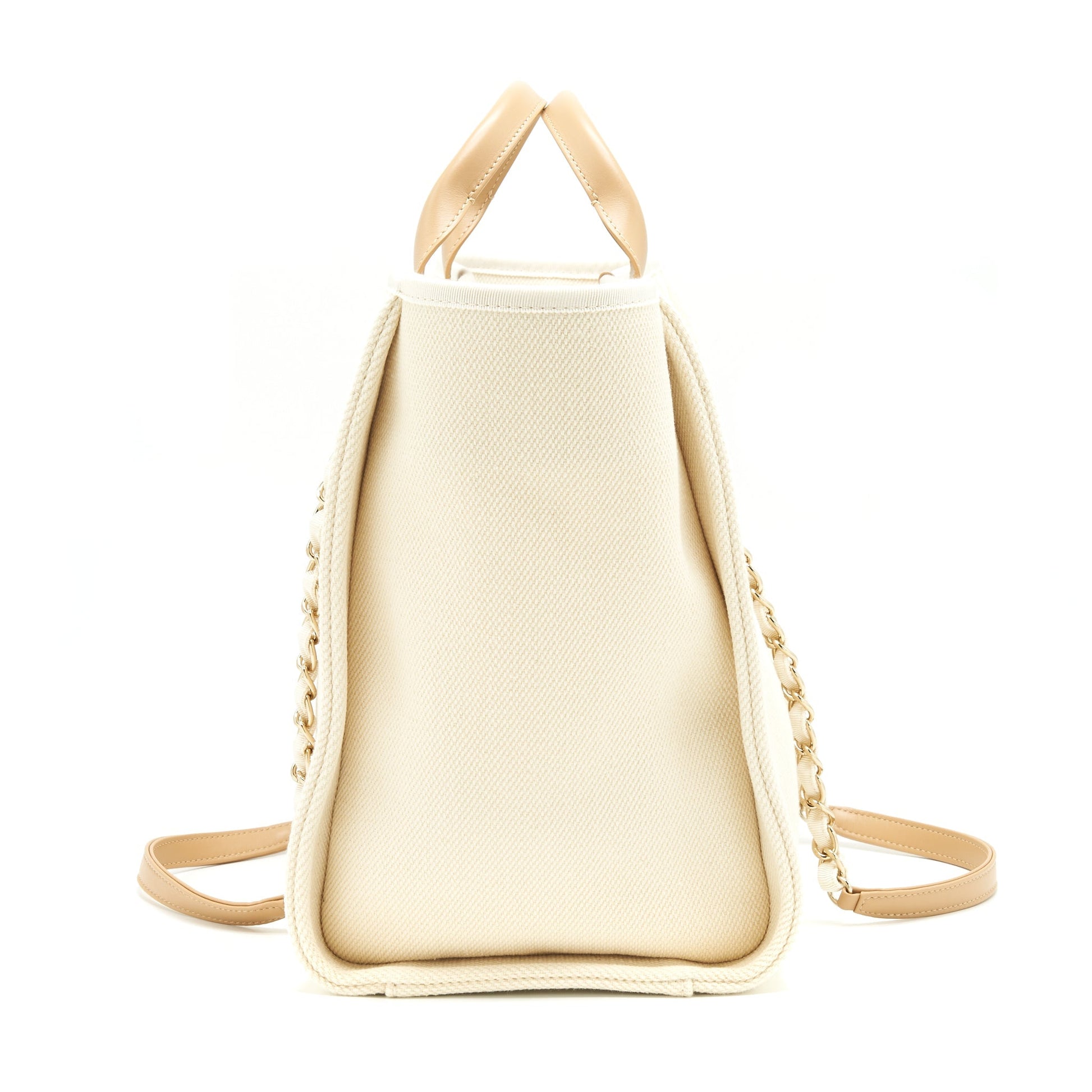 Chanel Deauville Tote Bag In Creamy White/ Beige GHW