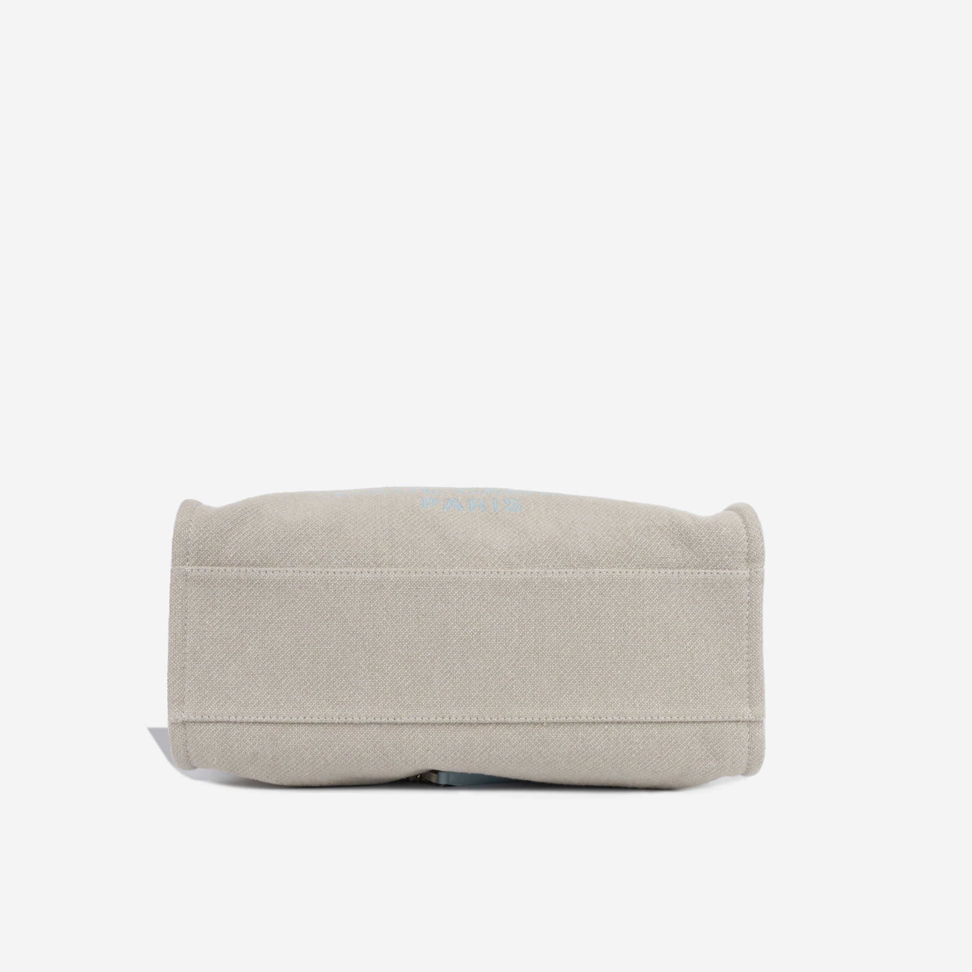 - "Chanel" embroidered text in light blue