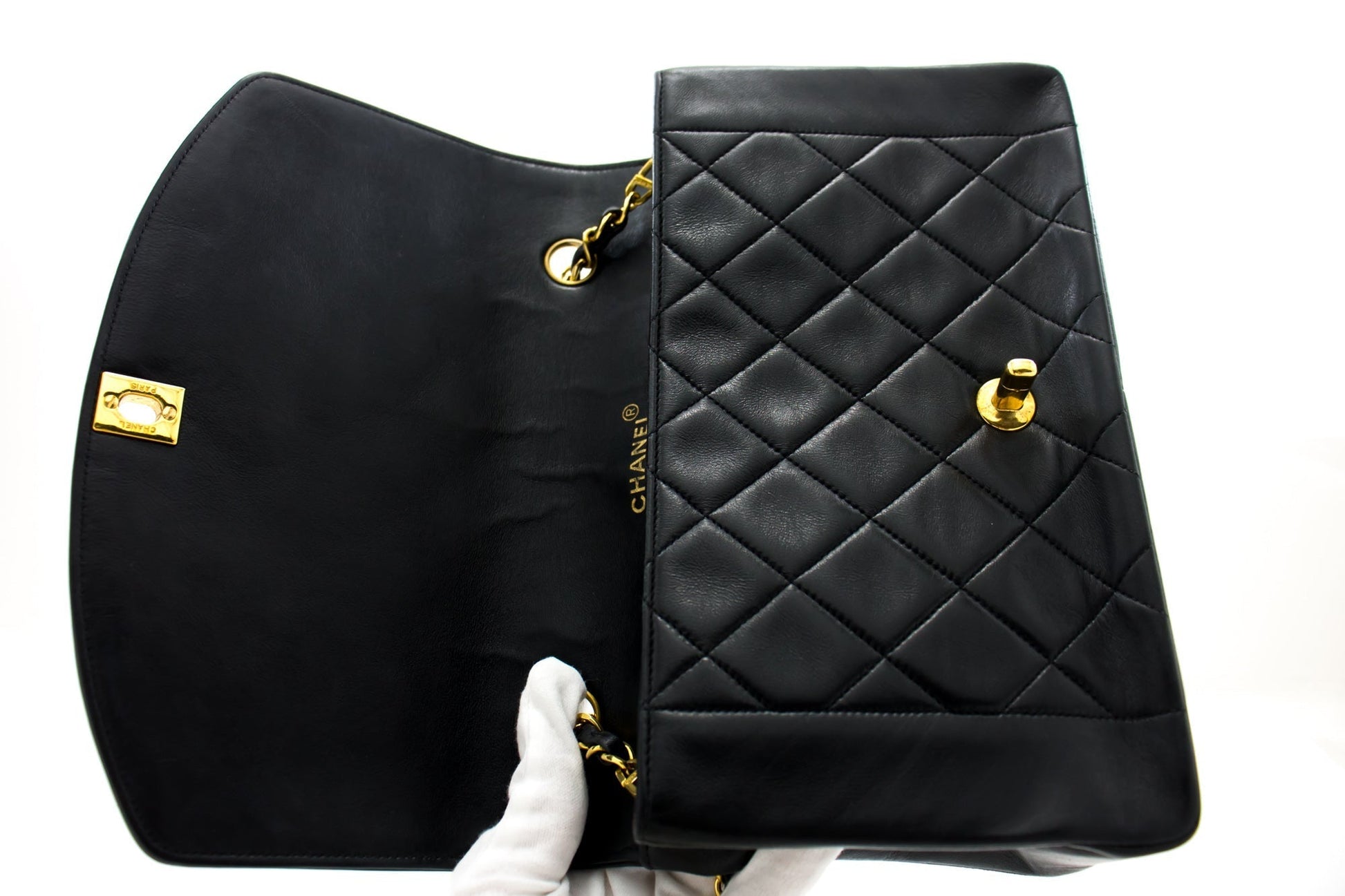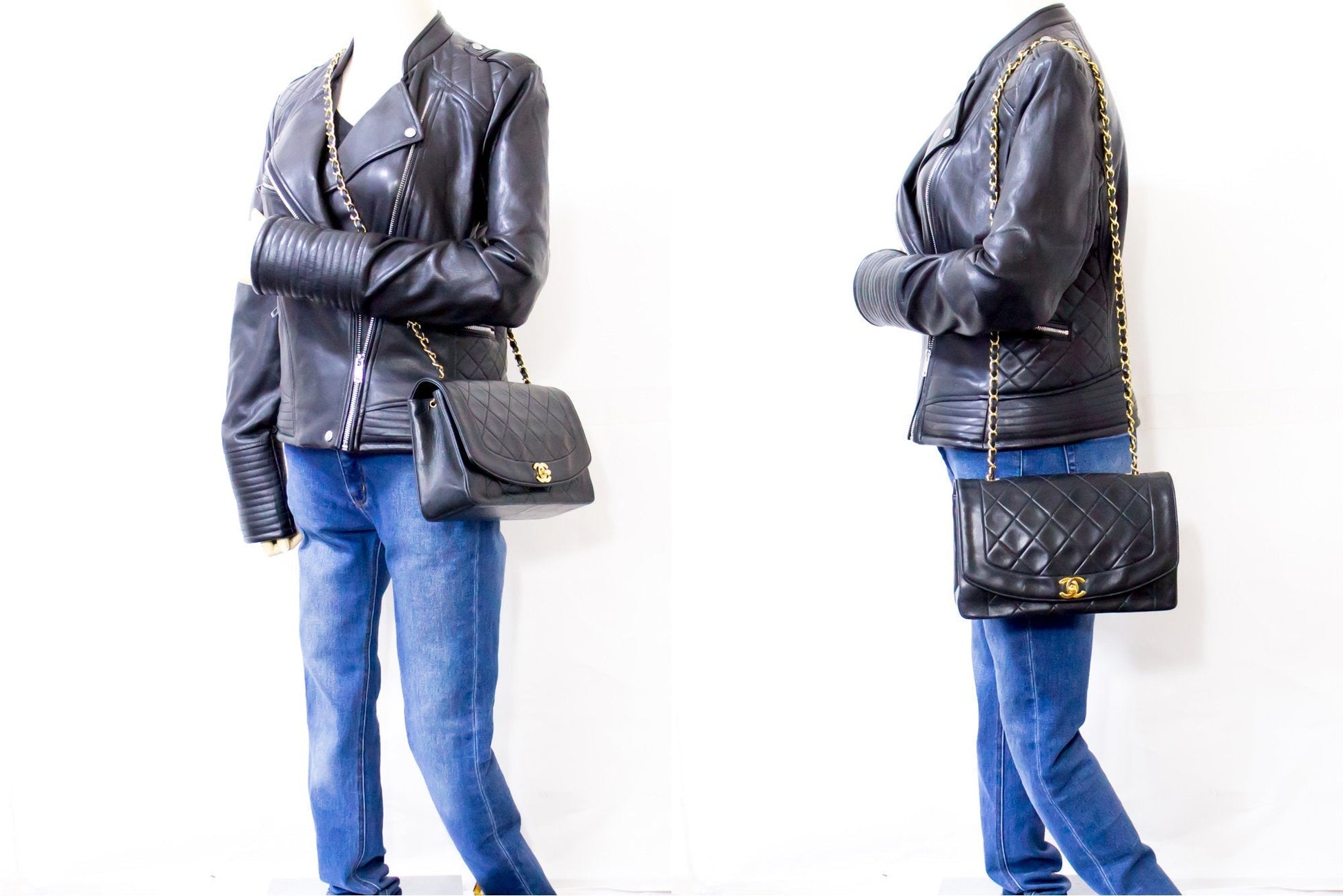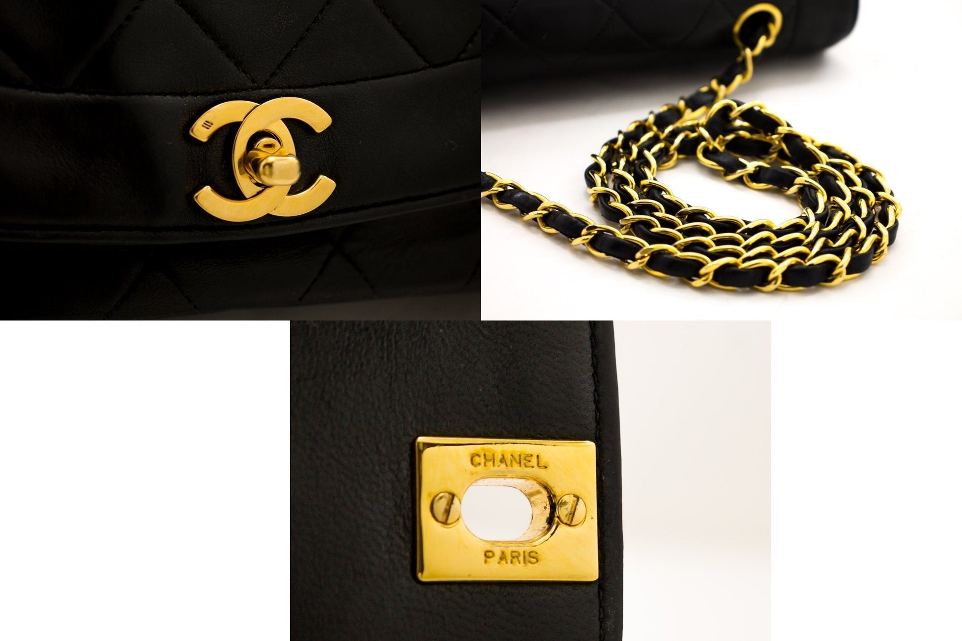 CHANEL Diana Flap Chain Shoulder Bag Black Quilted Lambskin Purse h32