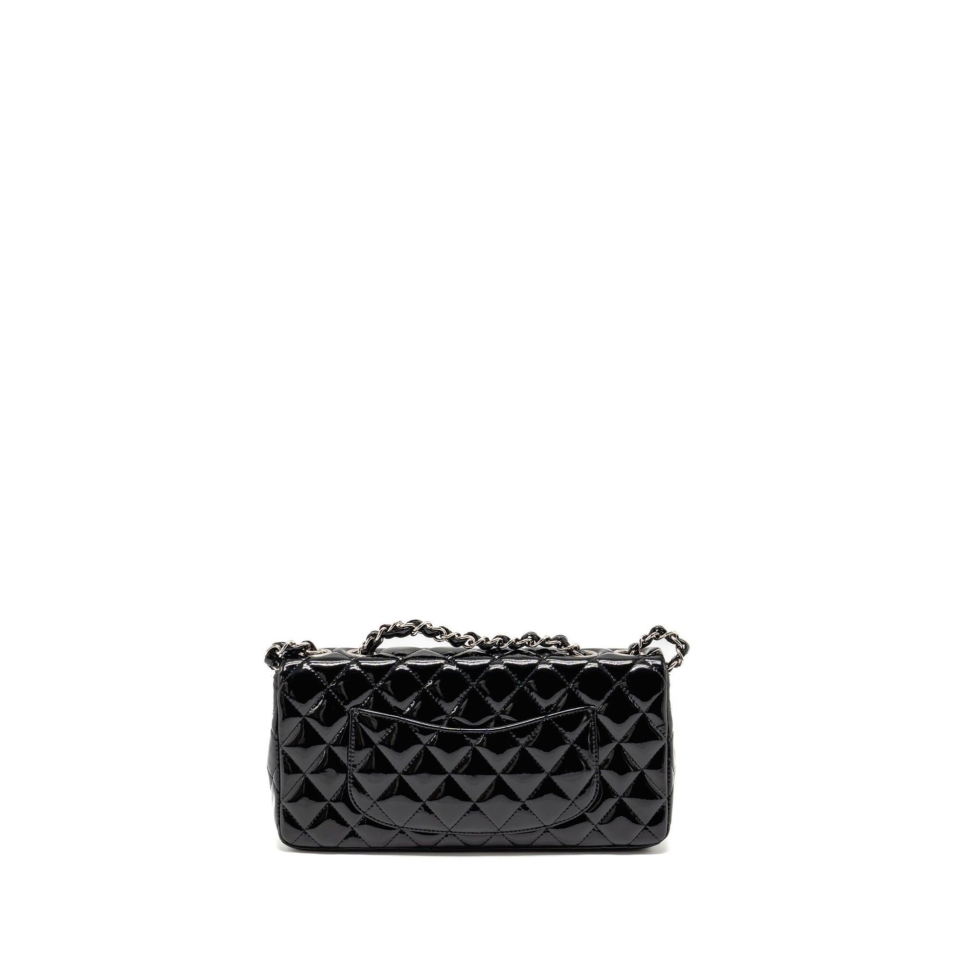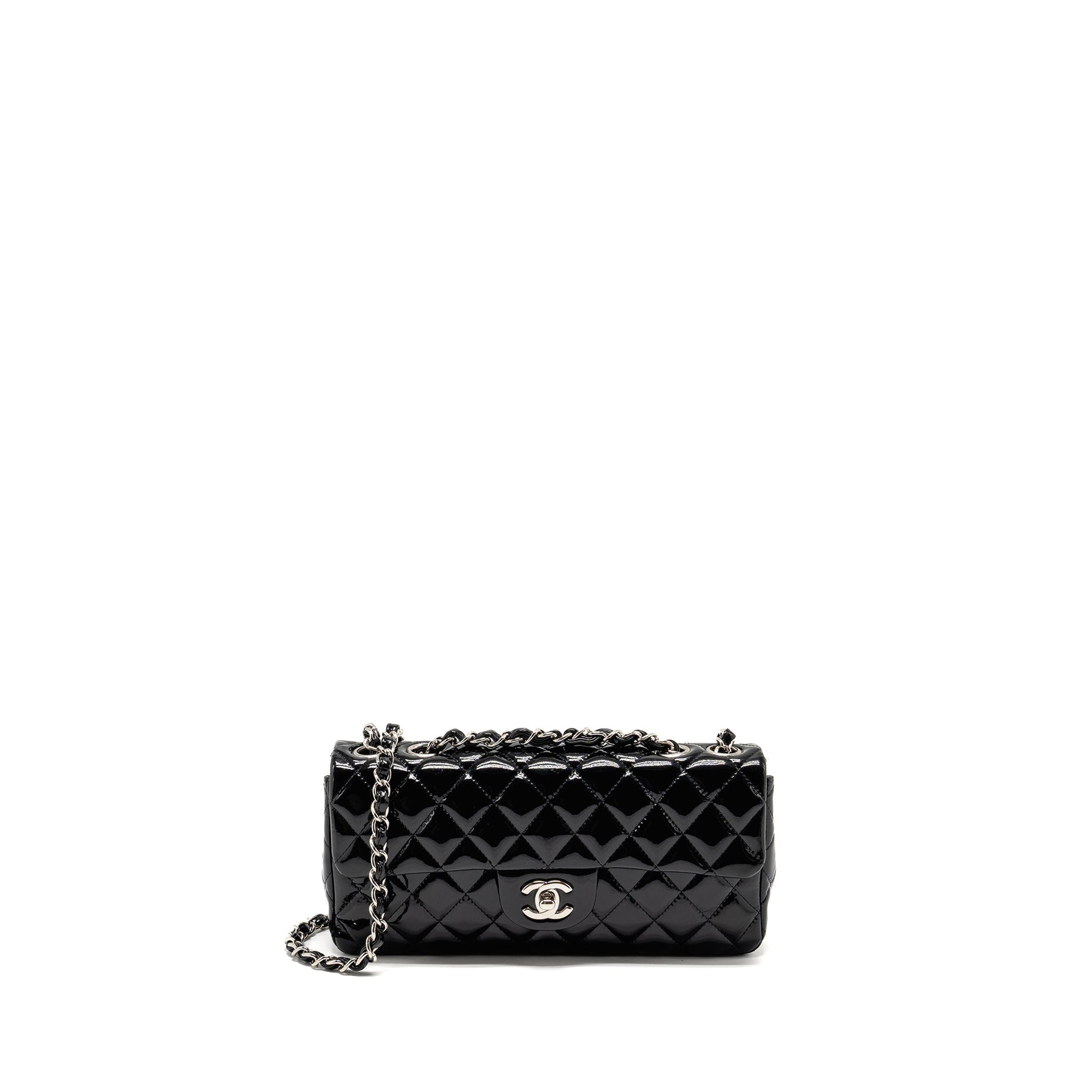 Chanel East West Flap Shoulder Bag Patent Leather Black SHW