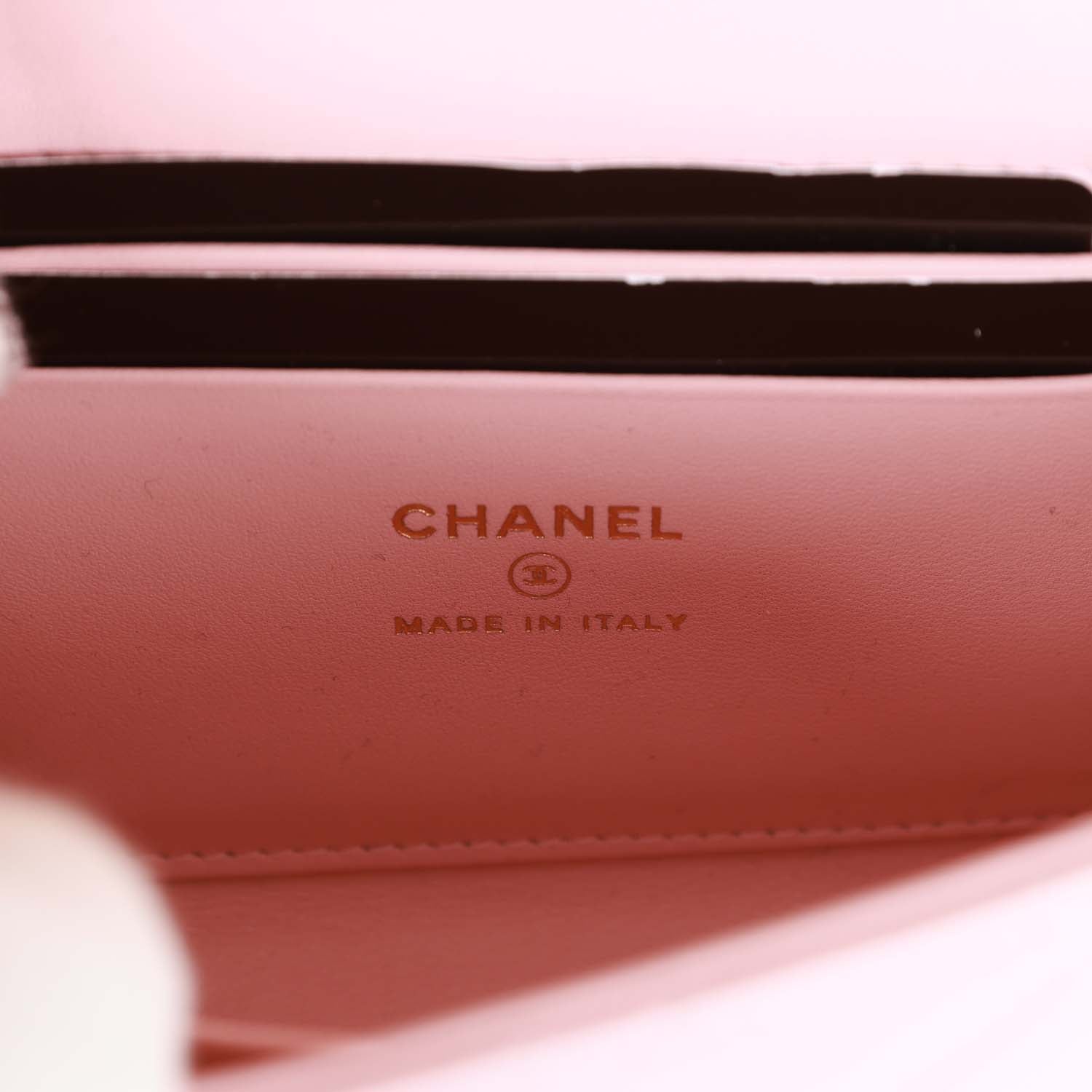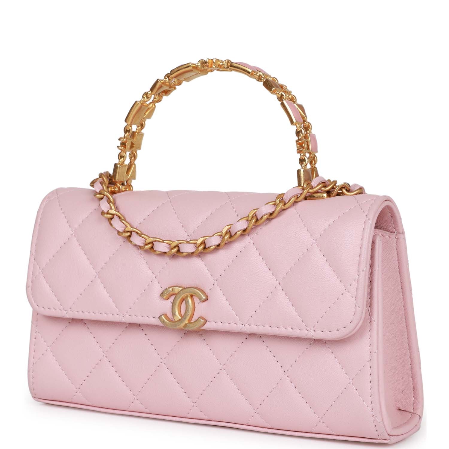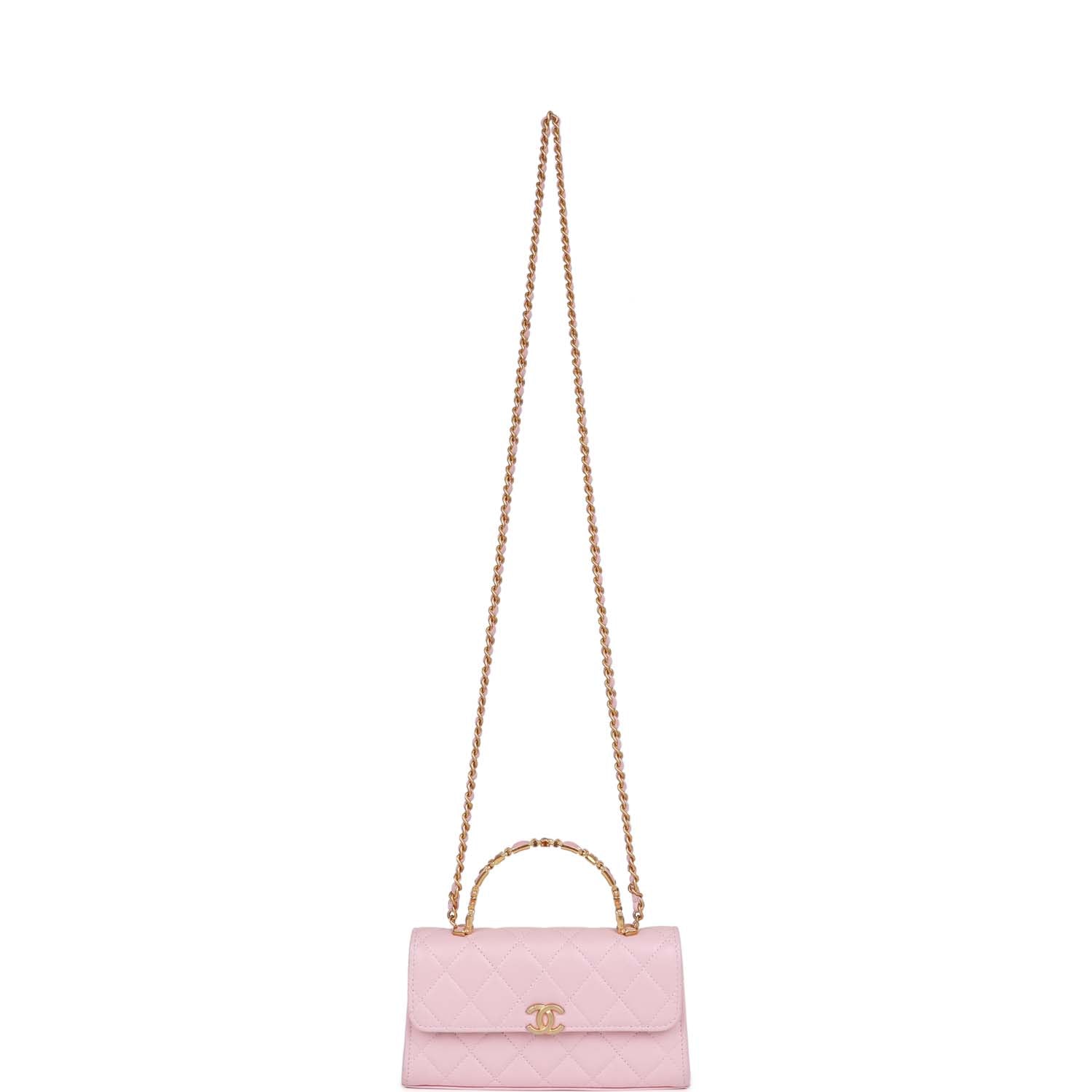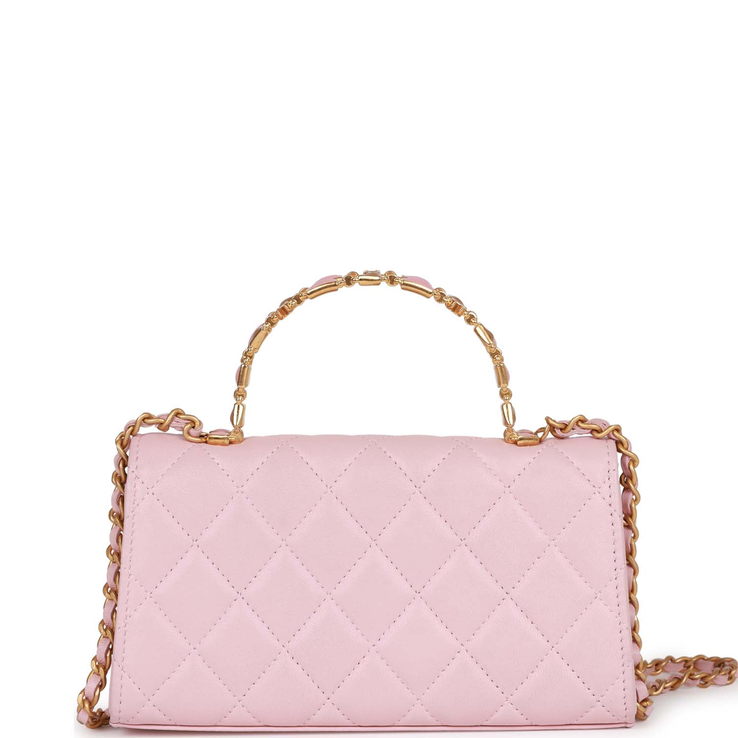 Chanel Enamel Top Handle Phone Holder Pink Lambskin Antique Gold Hardware