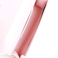 The interior is lined in pink leather and features a two card slots and a slip pocket on the opposite wall.