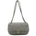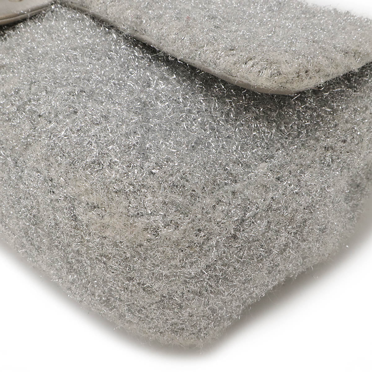 Chanel Fabric Leather Poolto Glitter Coco Mark Chain Shoulder Bag Silver