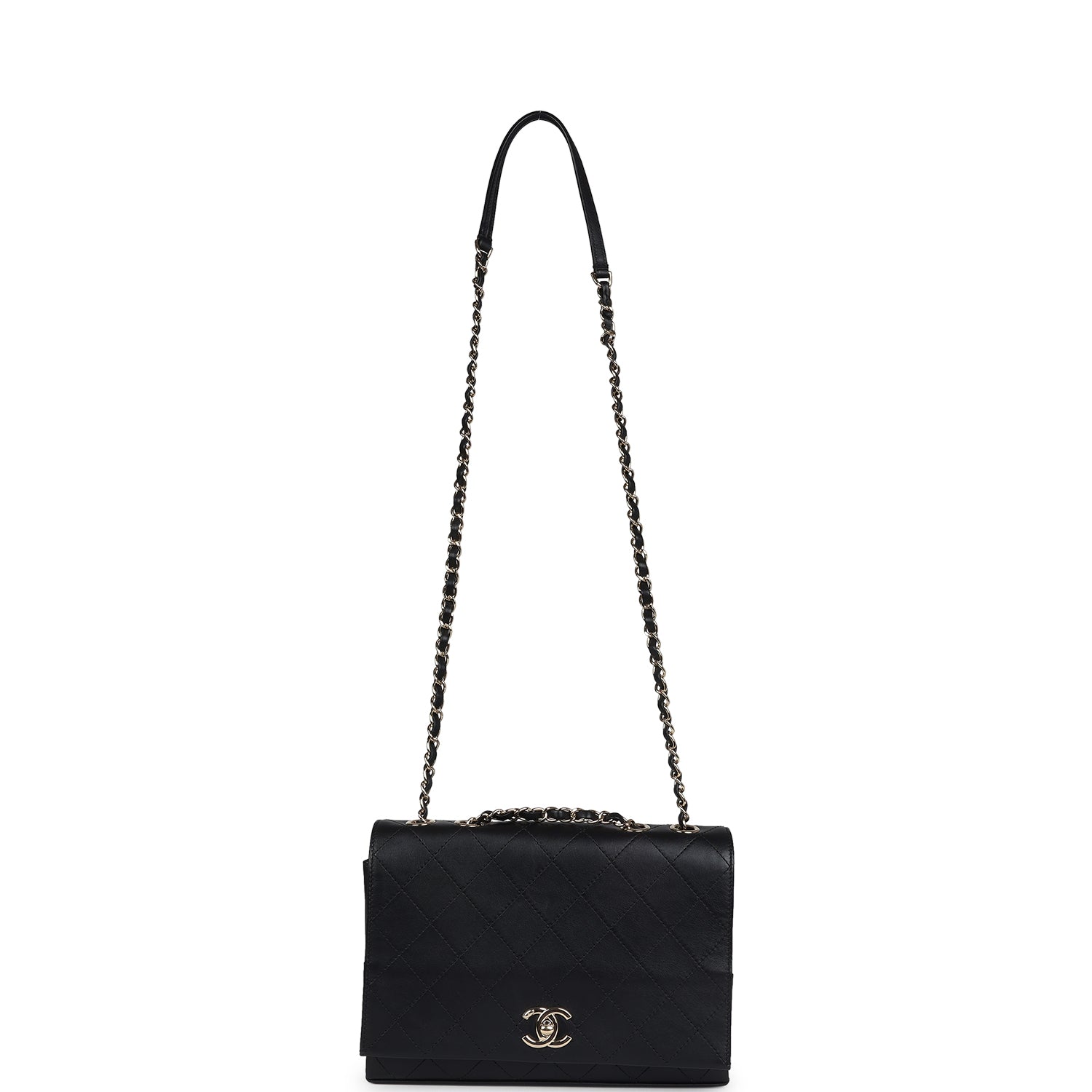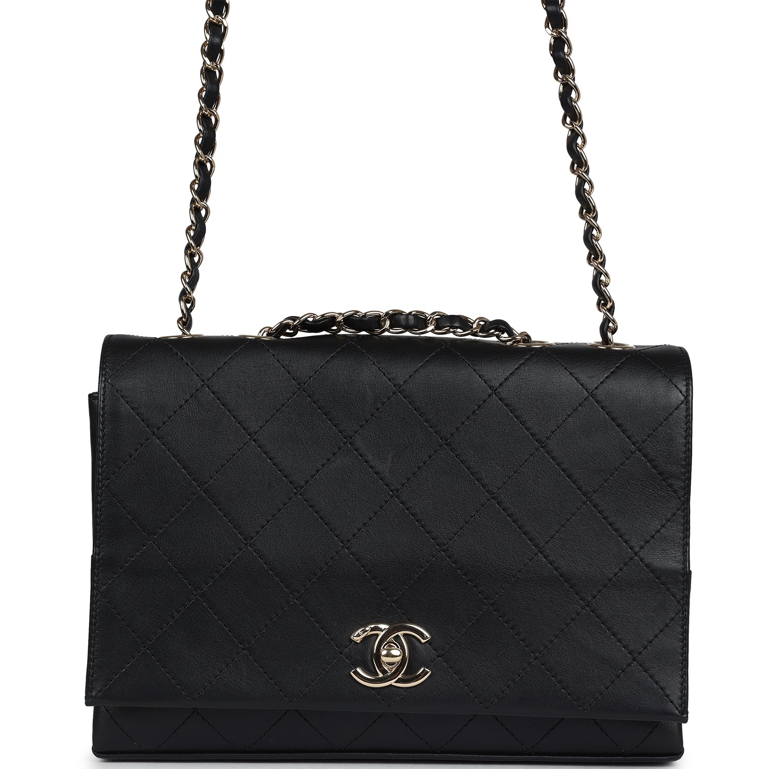 Chanel Flap Bag Black Calfskin Light Gold Hardware