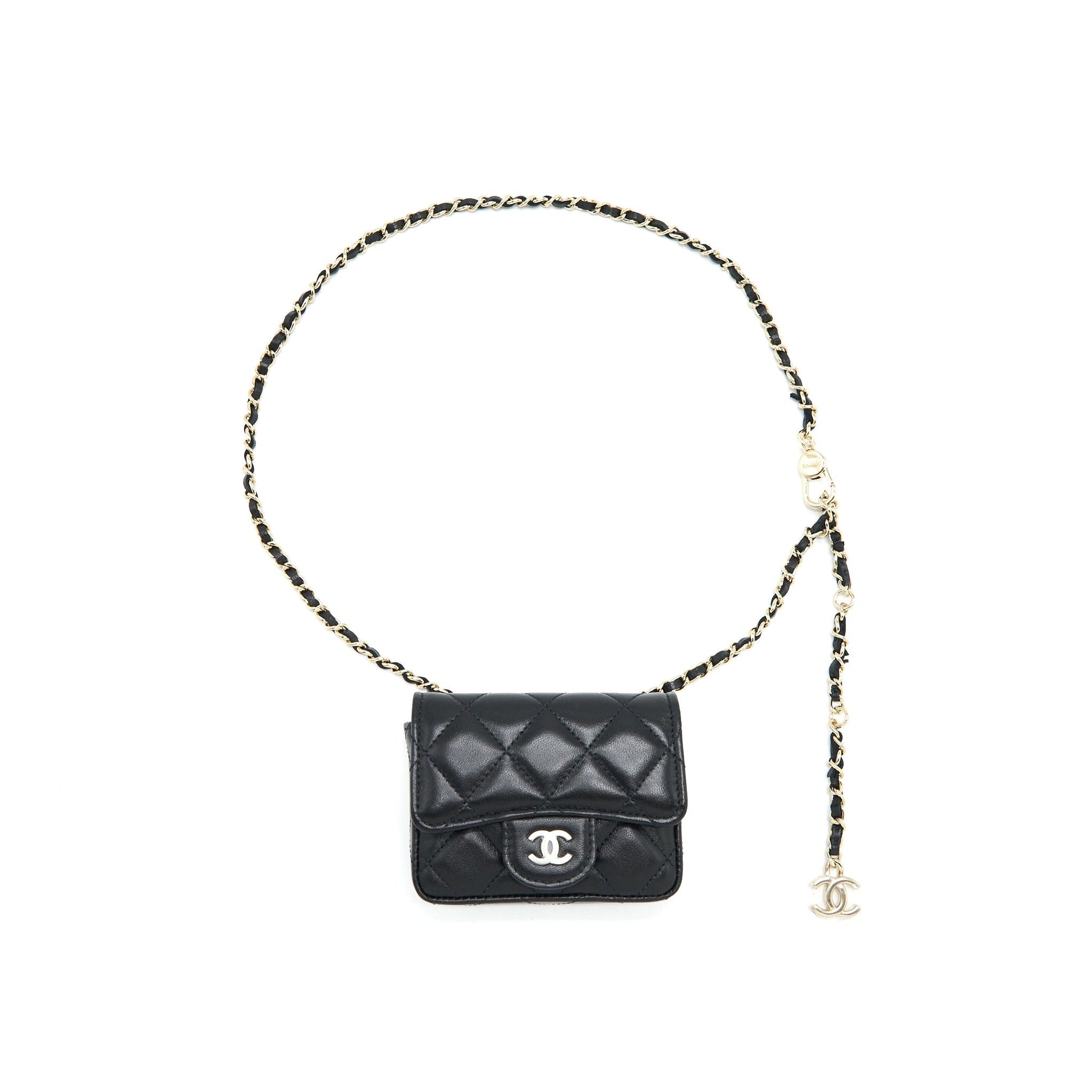 Chanel Flap Card Holder Belt Bag With Chain Lambskin Black LGHW