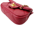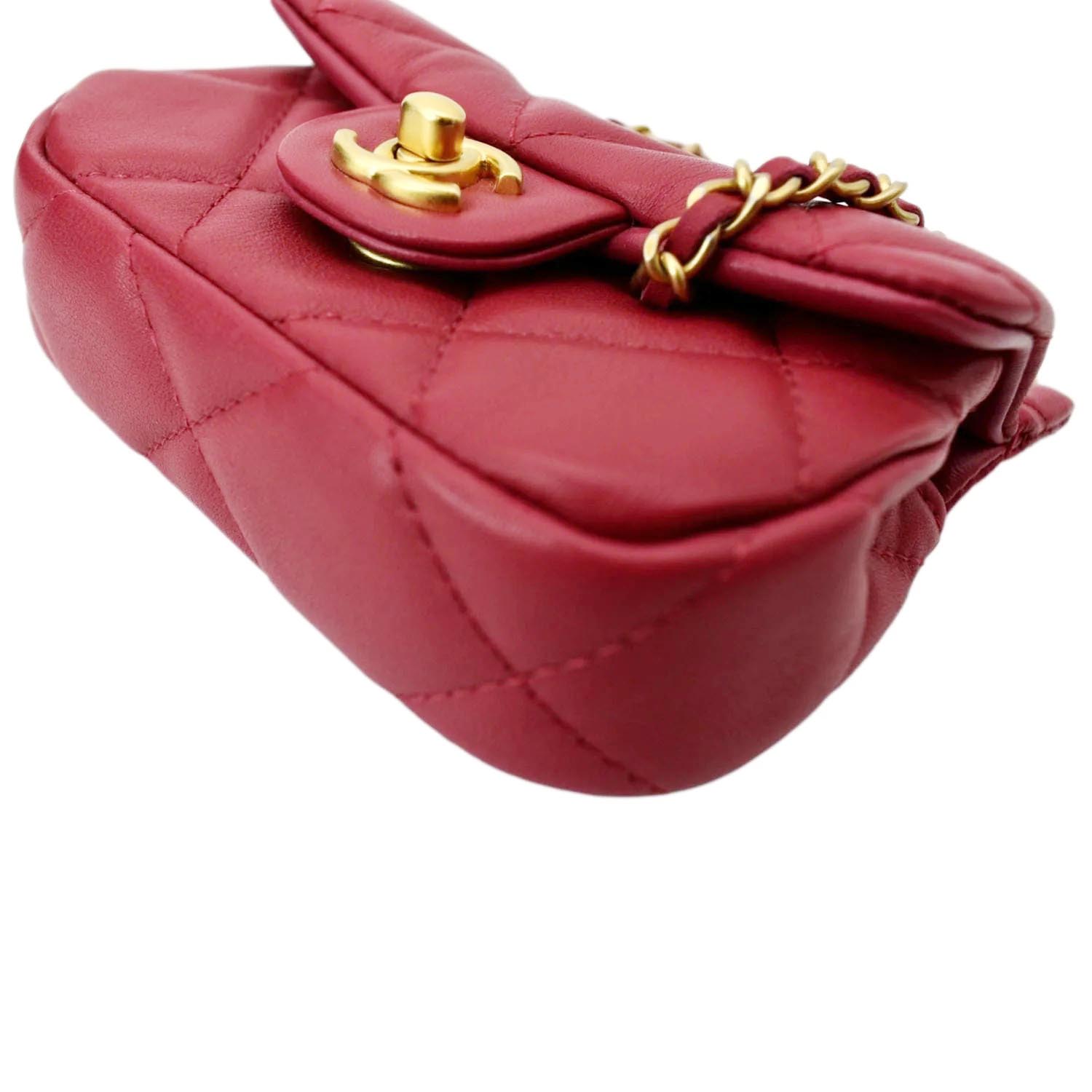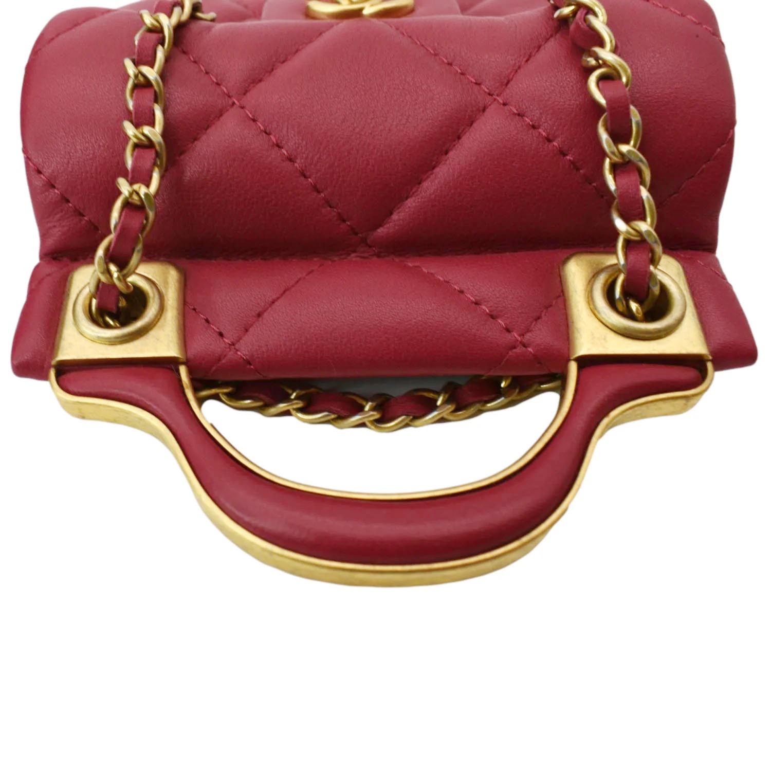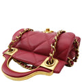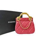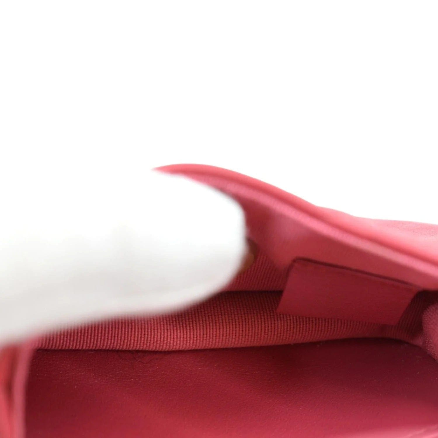 CHANEL Women Top Handle Flap Card Holder Quilted Leather Chain Shoulder Bag Red