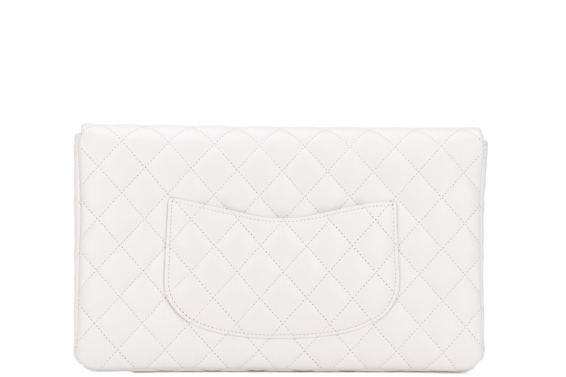 CHANEL FLAP CLUTH (2851xxxx) OFF WHITE QUILTED CAVIAR LEATHER WITH GOLD CHAIN, WITH , DUST COVER & BOX