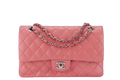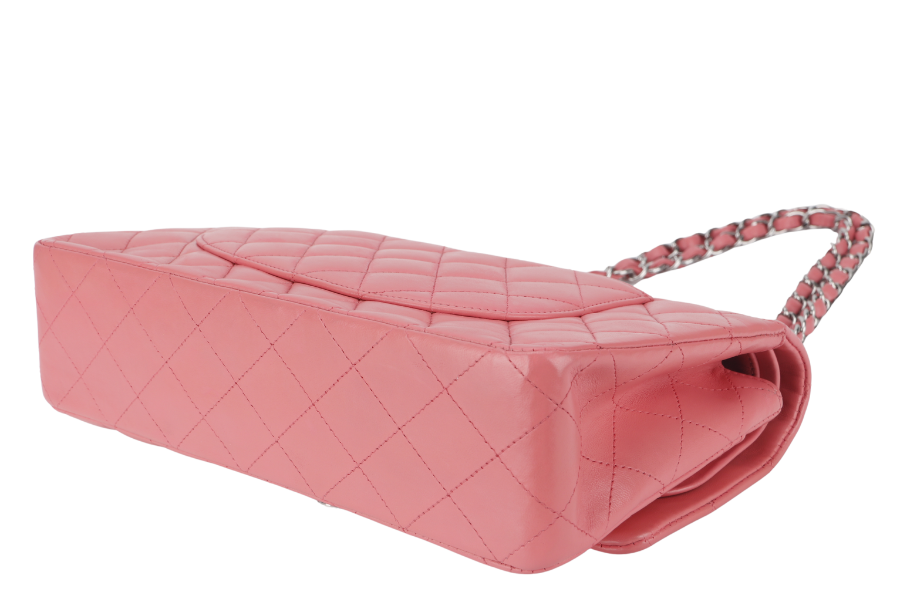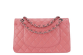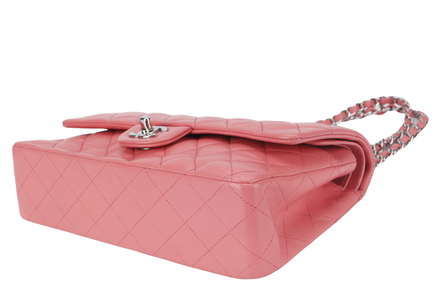 CHANEL FLAP MEDIUM (1632xxxx) PINK LAMBSKIN LEATHER SILVER HARDWARE WITH , DUST COVER AND BOX