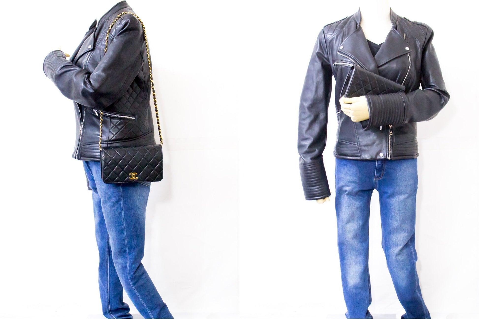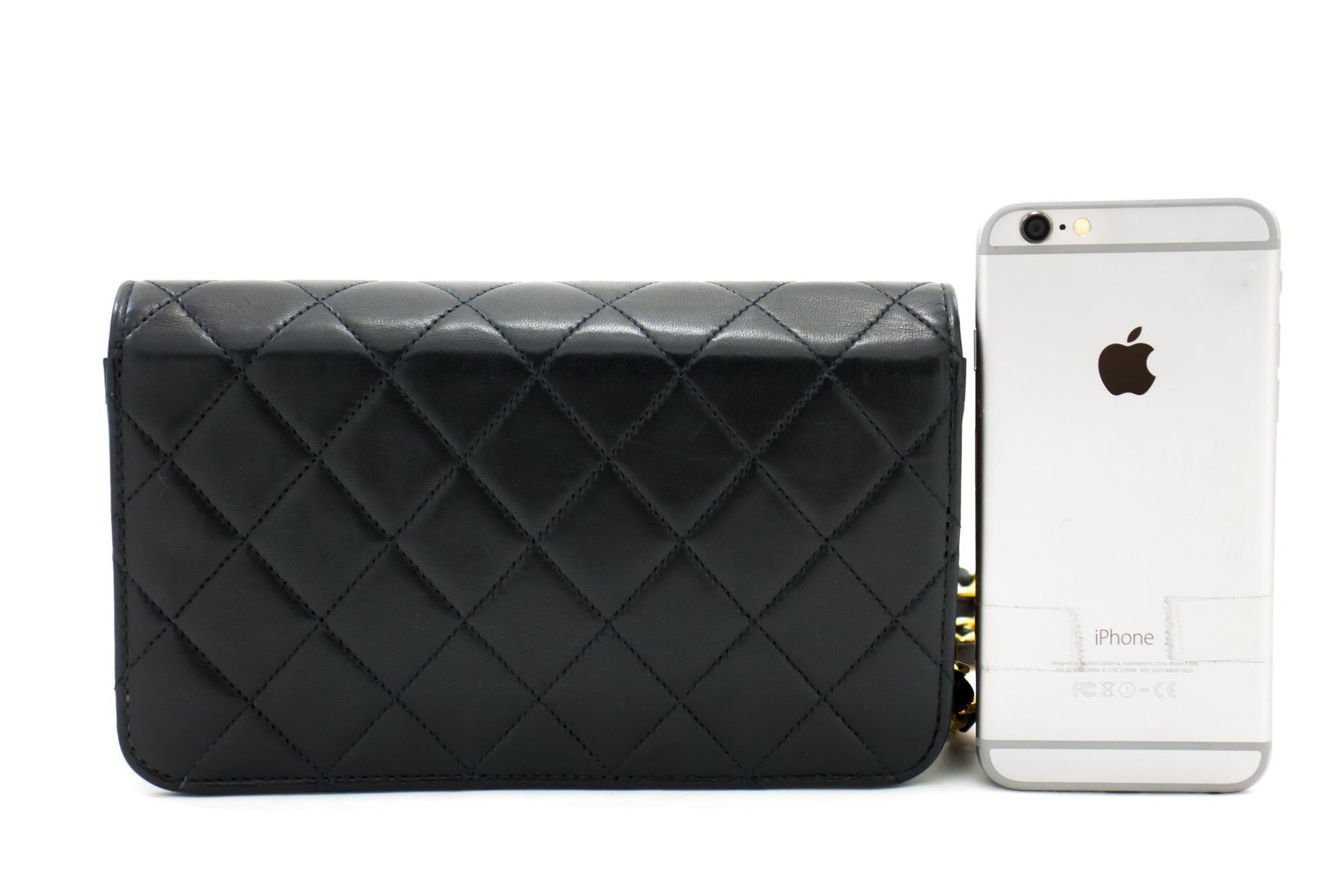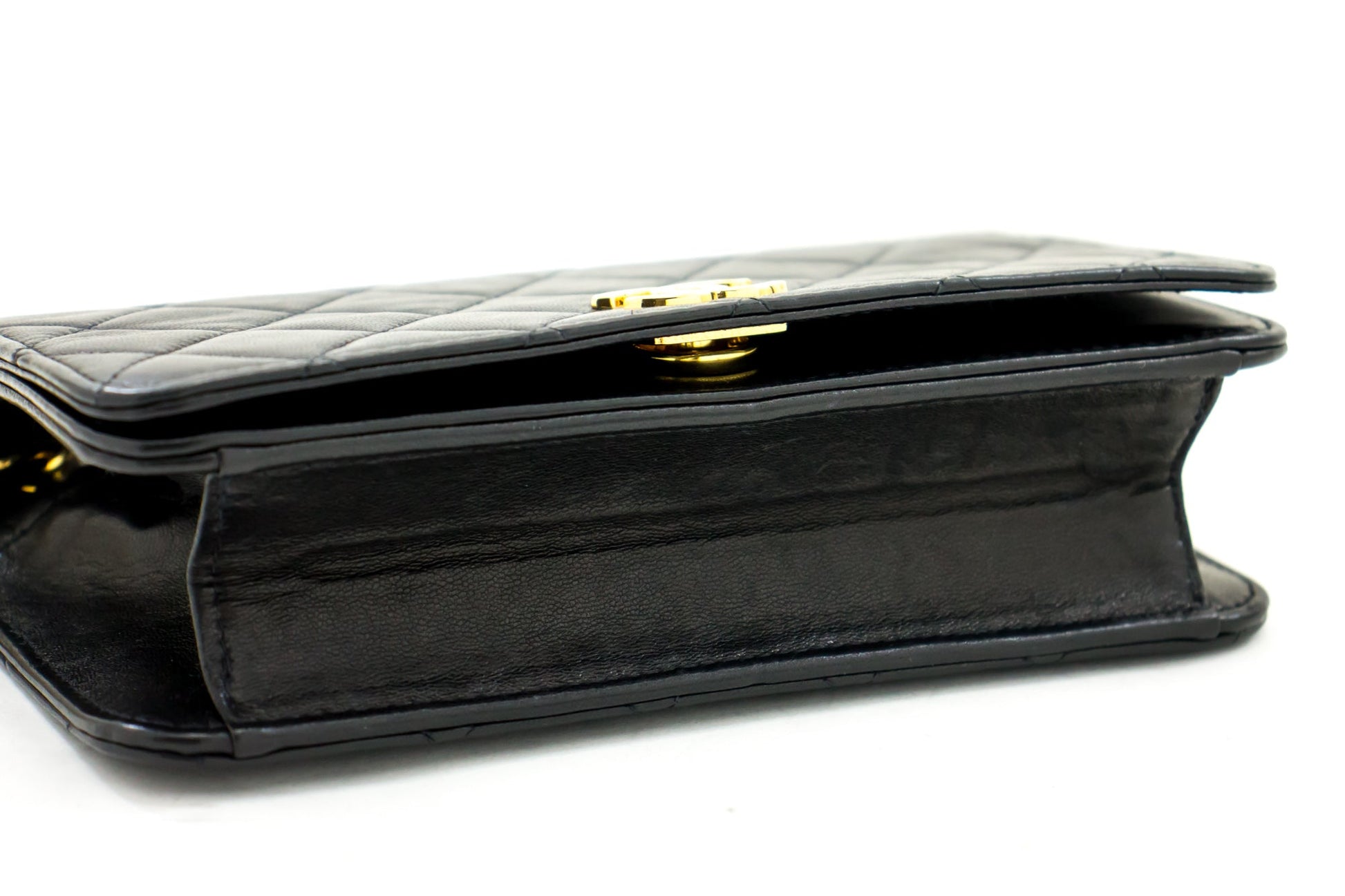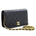 CHANEL Full Flap Chain Shoulder Bag Clutch Black Quilted Lambskin h09