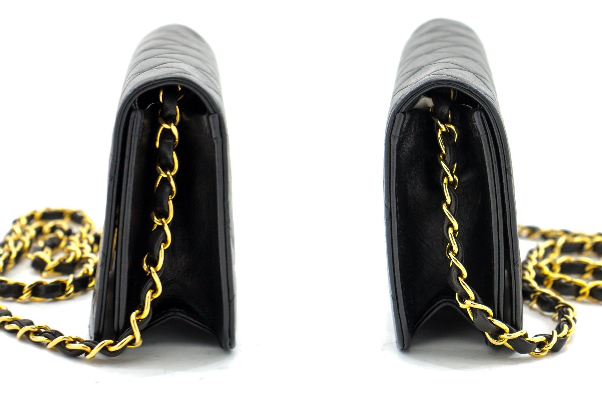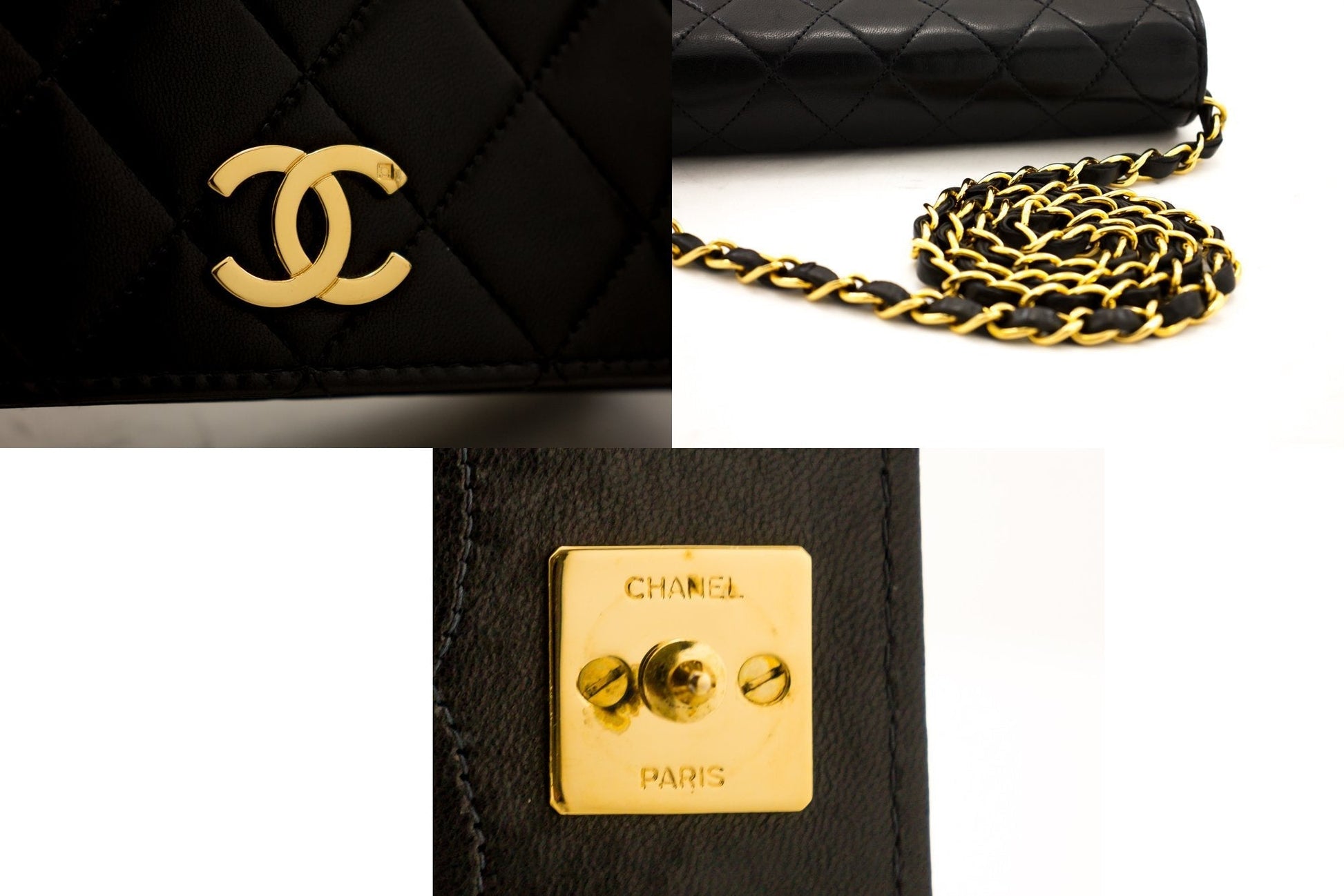 An authentic CHANEL Full Flap Chain Shoulder Bag Clutch Black Quilted made of black Lambskin h09 This item is Vintage / Classic. The year of manufacture would be 1997-1999.