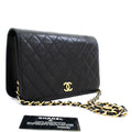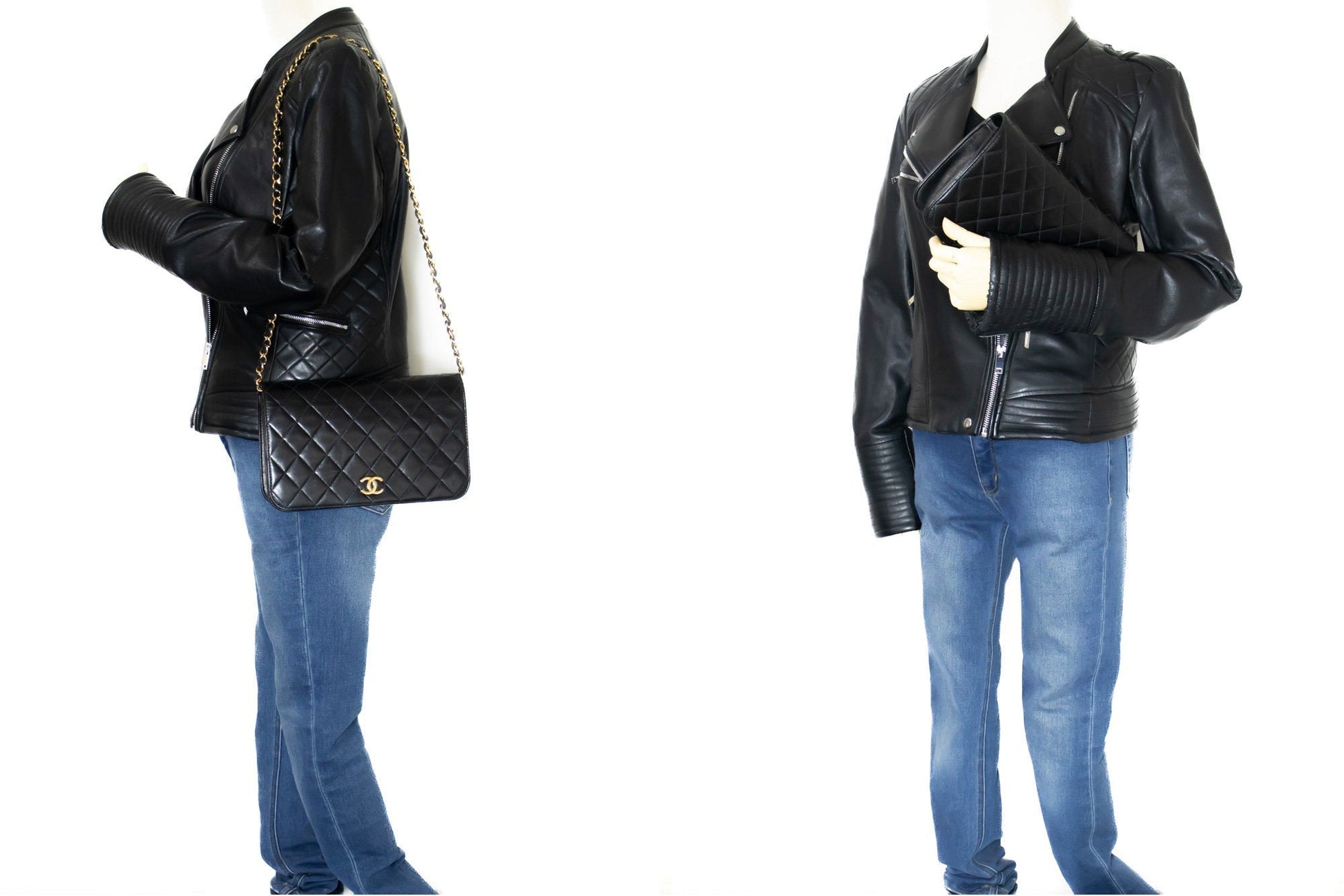 CHANEL Full Flap Chain Shoulder Bag Clutch Black Quilted Lambskin k78