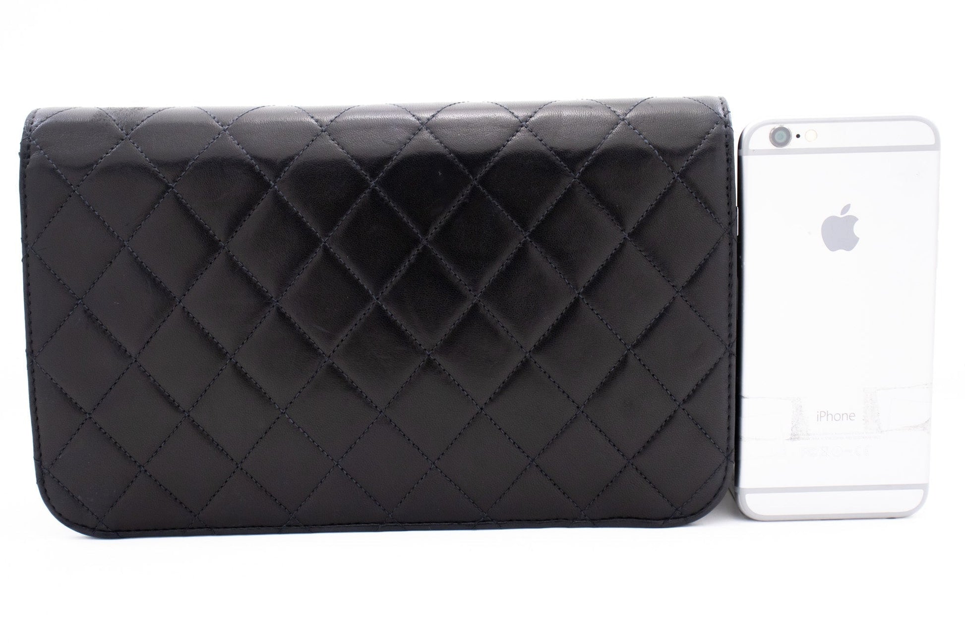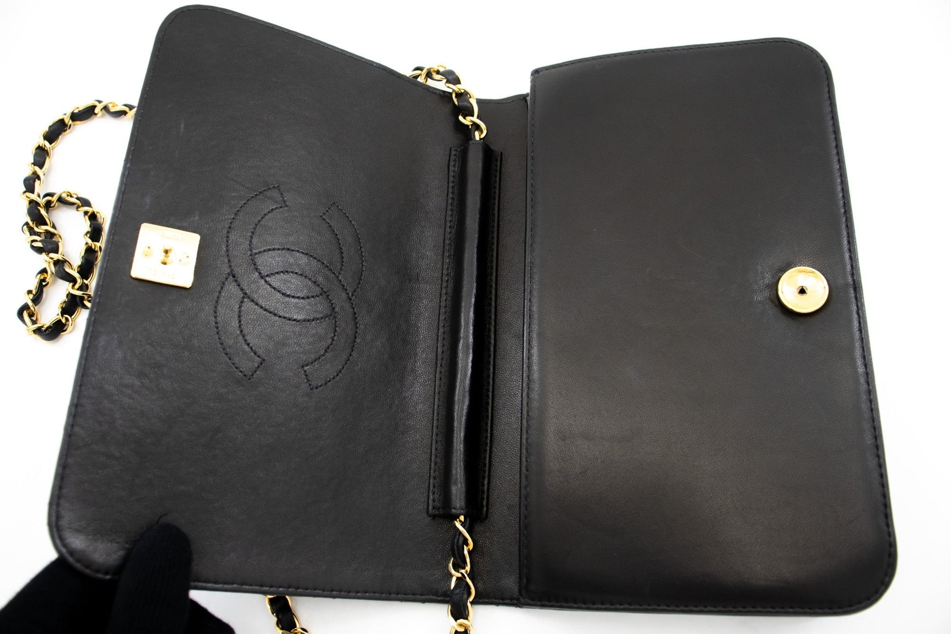 An authentic CHANEL Full Flap Chain Shoulder Bag Clutch Black Quilted made of black Lambskin k78 This item is Vintage / Classic. The year of manufacture would be 1997-1999.