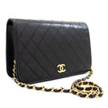CHANEL Full Flap Chain Shoulder Bag Clutch Black Quilted Lambskin k82