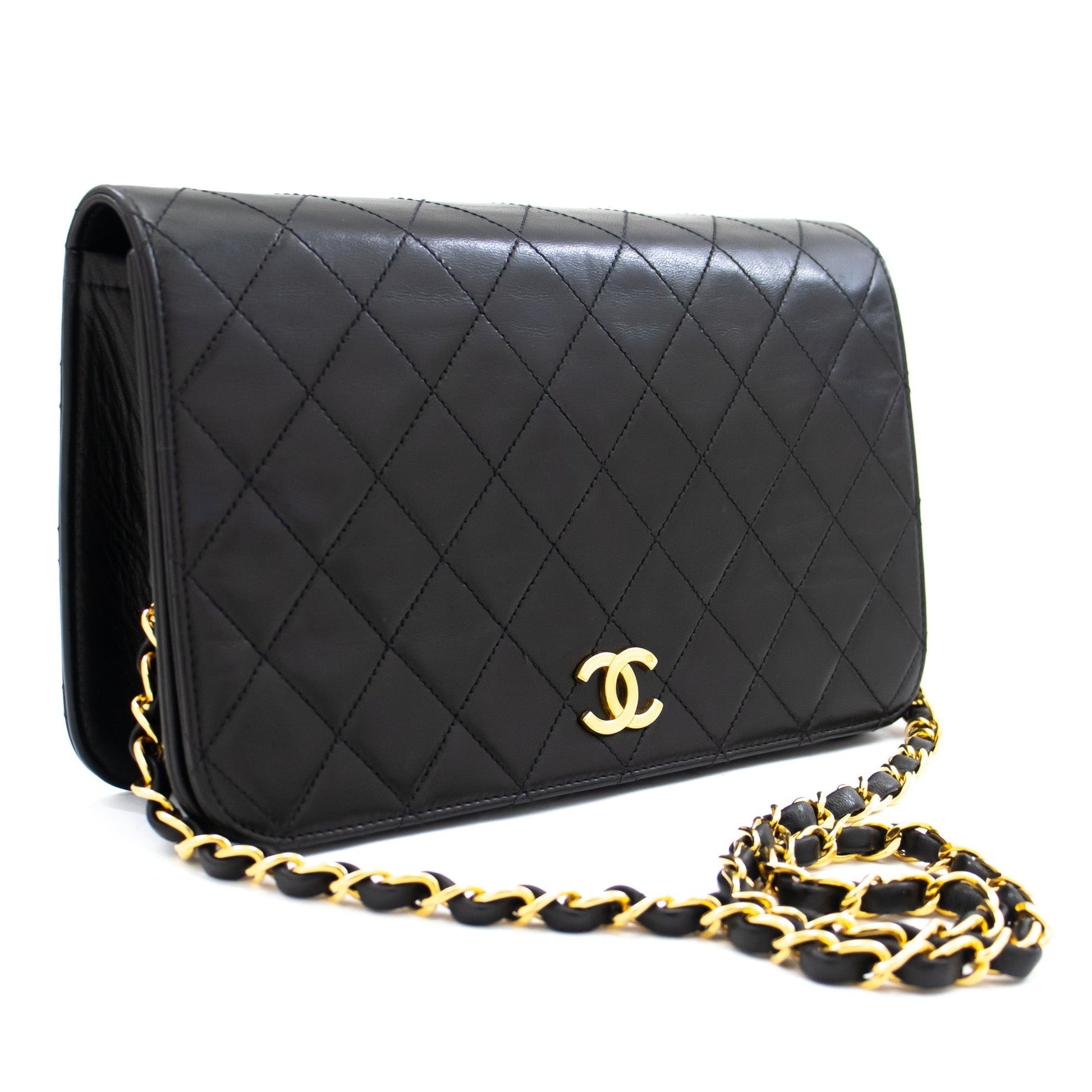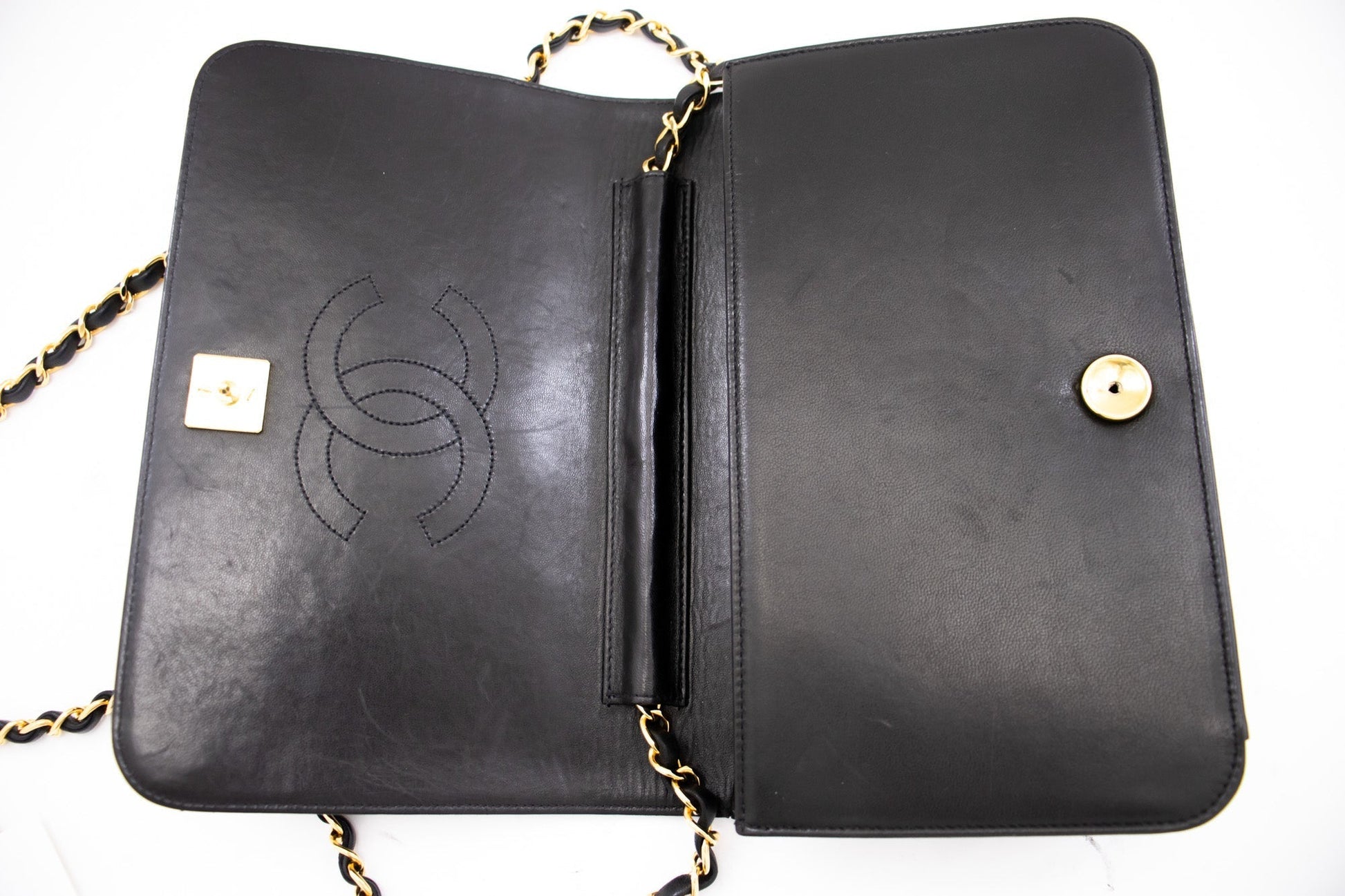 An authentic CHANEL Full Flap Chain Shoulder Bag Clutch Black Quilted made of black Lambskin k82 This item is Vintage / Classic. The year of manufacture would be 1996-1997.