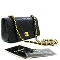 CHANEL Full Flap Chain Shoulder Bag Crossbody Black Quilted Lamb k64