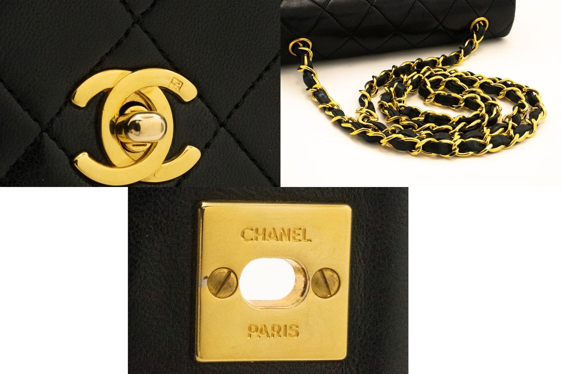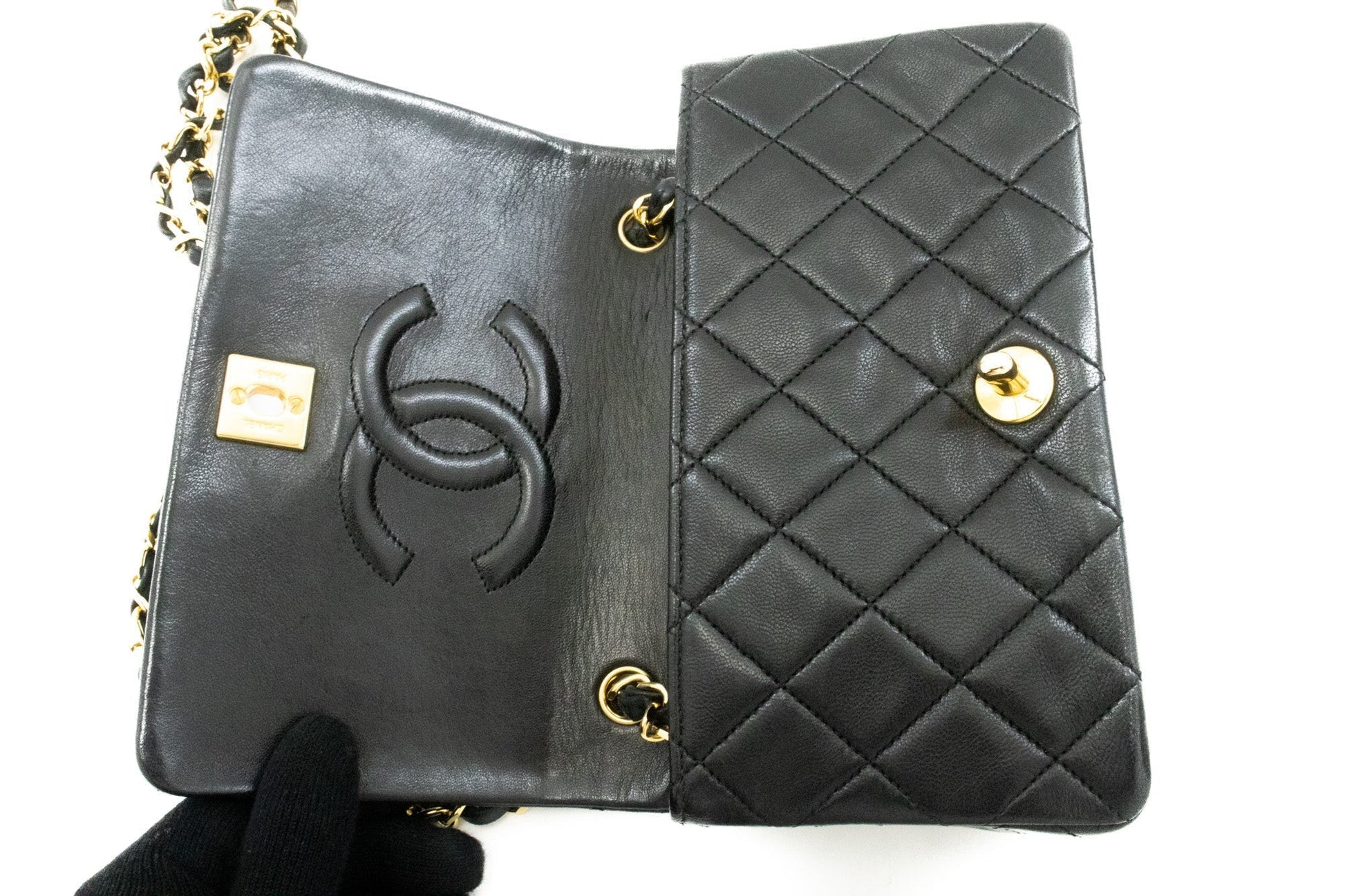 An authentic CHANEL Full Flap Chain Shoulder Bag Crossbody Black Quilted Lamb k64 This item is Vintage / Classic. The year of manufacture would be 1989-1991.