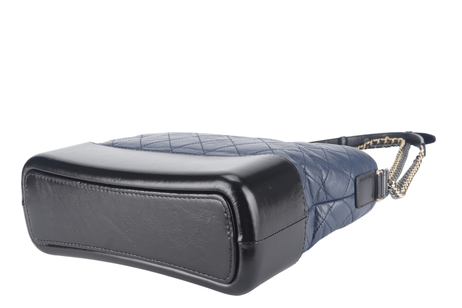 CHANEL GABRIELLE HOBO SHOULDER BAG (2537xxxx) BLUE-BLACK QUILTED CALFSKIN LEATHER SILVER & GOLD TONE HARDWARE NO AND NO DUST COVER