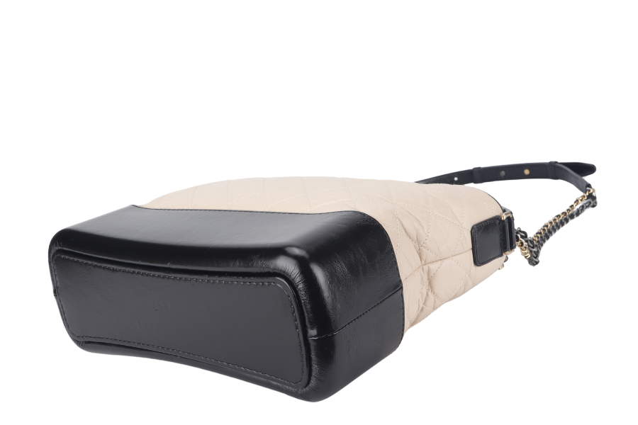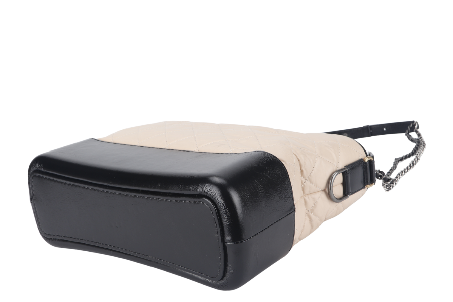 CHANEL GABRIELLE MEDIUM (254xxxx) BEIGE BLACK AGED CALFSKIN GOLD TONE/ SILVER TONE & RUTHENIUM HARDWARE WITH DUST COVER