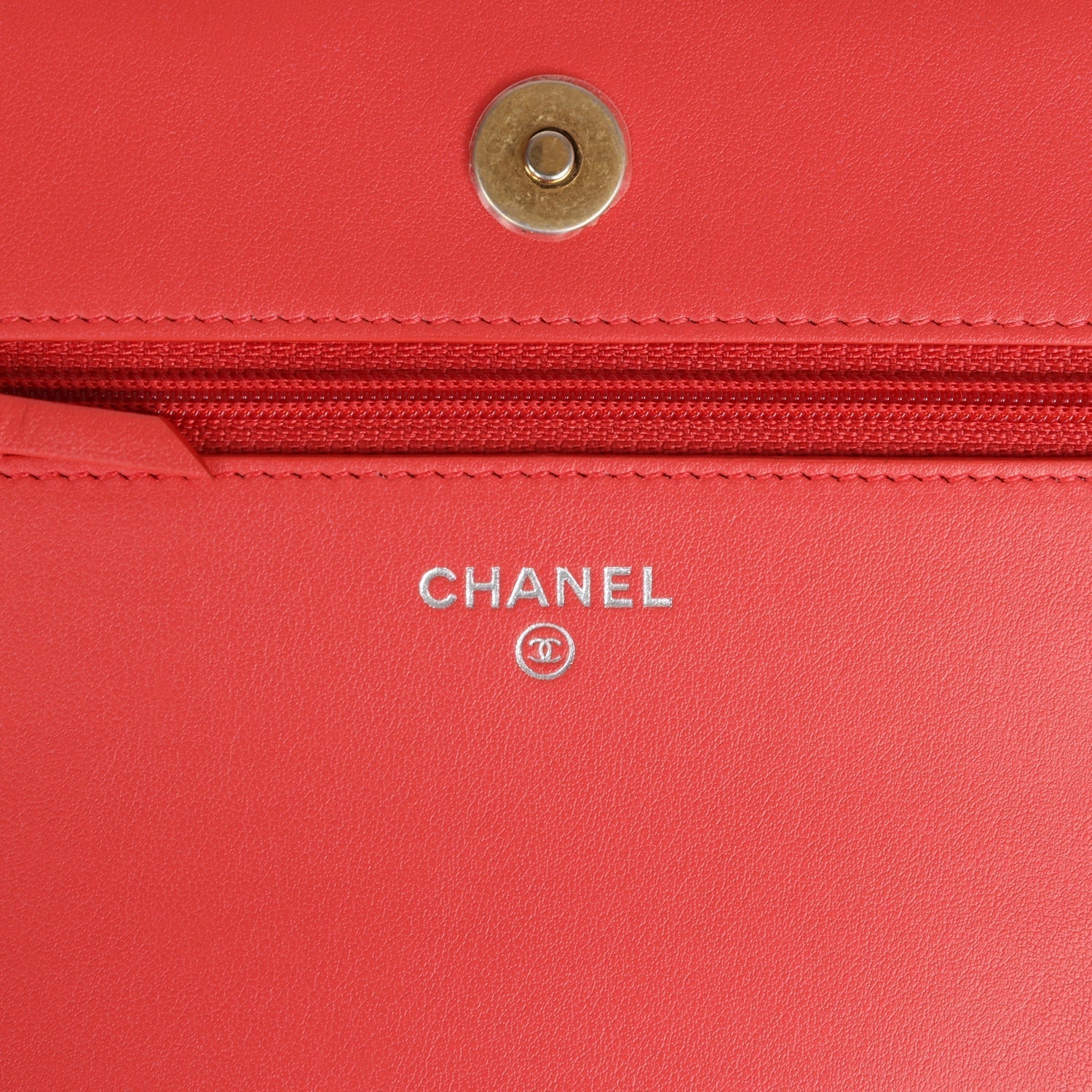 Chanel Gabrielle Wallet On Chain WOC Red Aged Calfskin Mixed Hardware