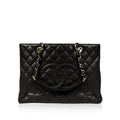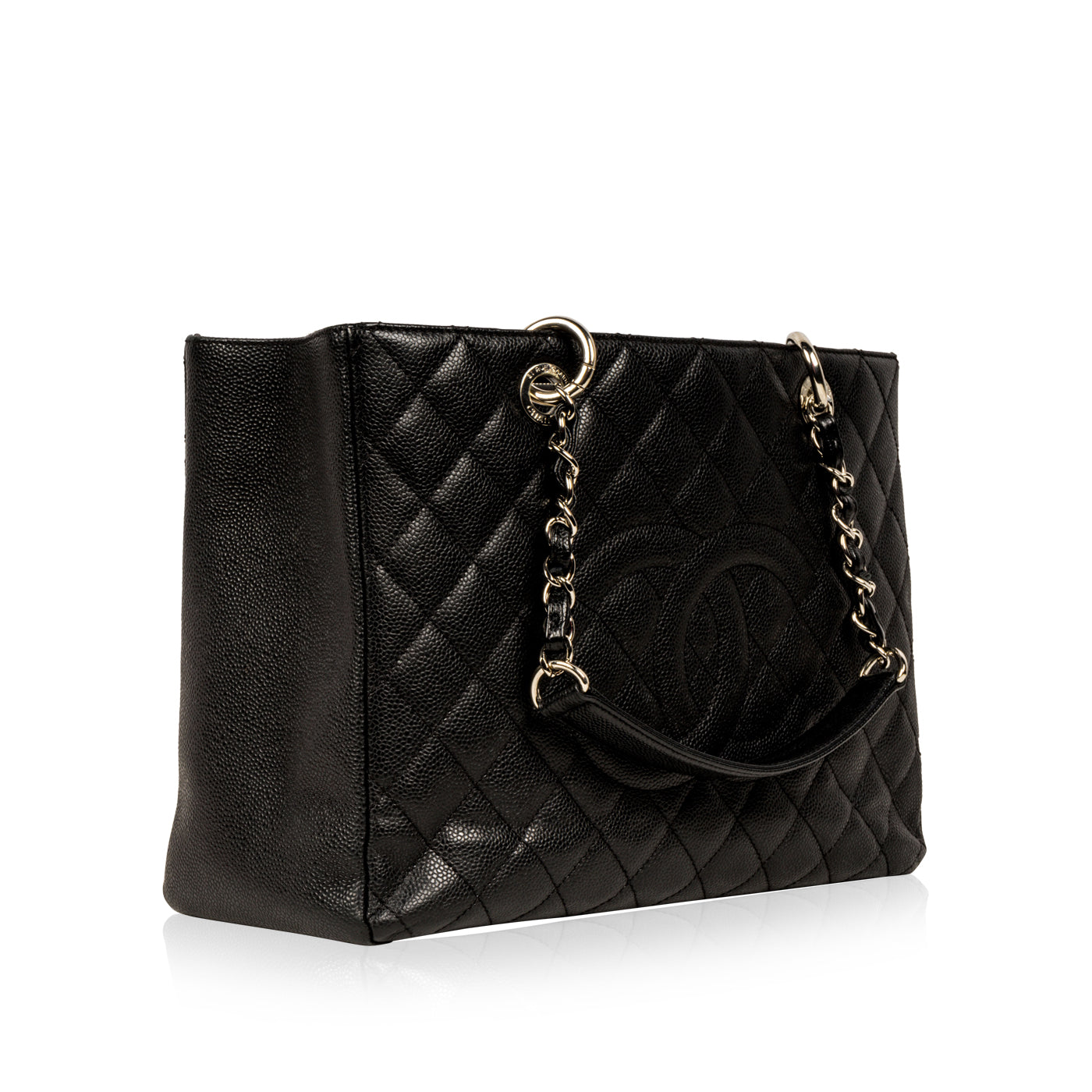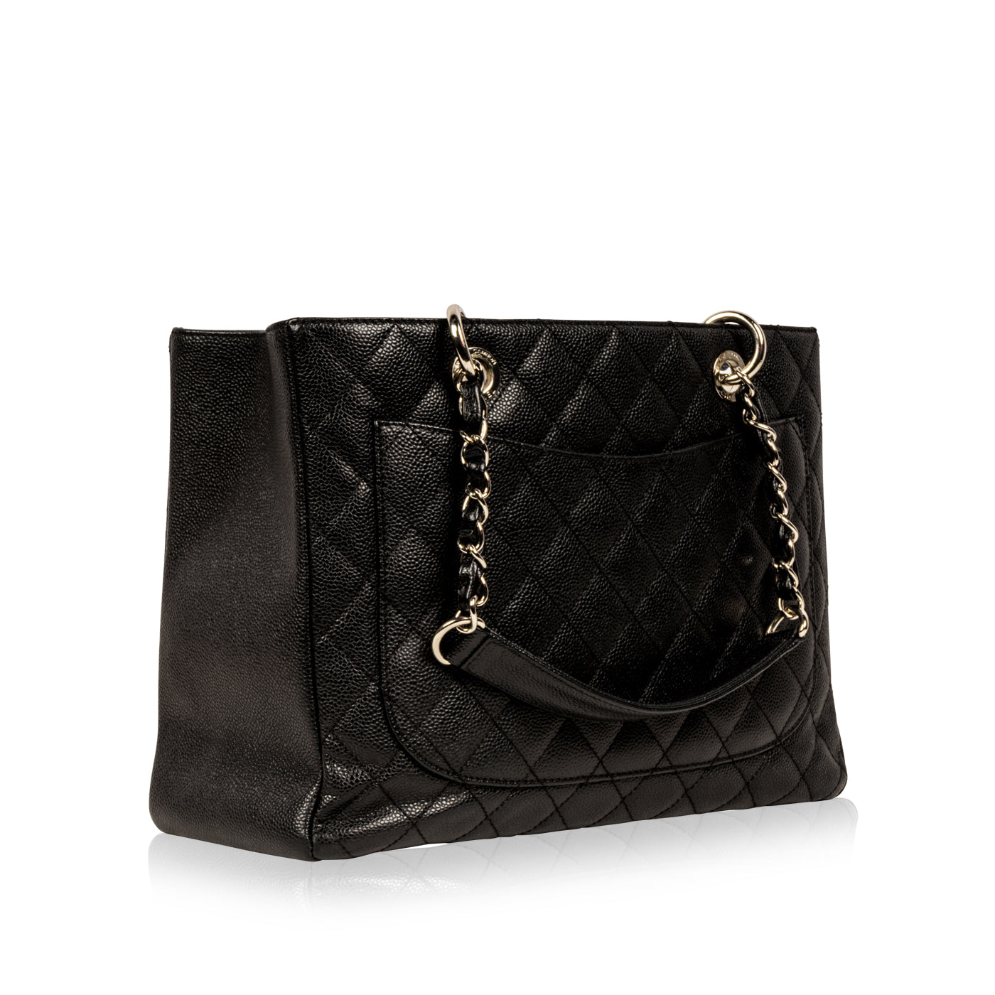 Chanel presents one of its most exclusive and coveted handbags; the Grand Shopping Tote. The bag is presented in durable caviar leather and features the brand’s iconic quilted pattern alongside a large CC stitched logo. Its spacious interior features two open compartments separated by a middle zip pocket. A timeless piece that will never go out of style, the GST remains one of the most in-demand Chanel bags - despite unfortunately being discontinued in 2015. A classic handbag from the brand, the GST is that bag you'll use for any and every occasion. Going to work? Running errands? Dinner party with friends? Travelling? The GST is the ideal companion to have by your side. Sleek, stylish and sophisticated, the GST is a bag you'll have forever and one that you'll never fall out of love with. A well-worthy investment and a true must-have in any luxury handbag collection.