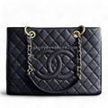 GST Grand Shopping Tote Caviar Quilted Grained Calfskin Black Golden Hardware Series 19