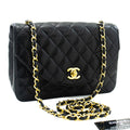 CHANEL Half Moon Chain Shoulder Bag Crossbody Black Quilted Flap k22