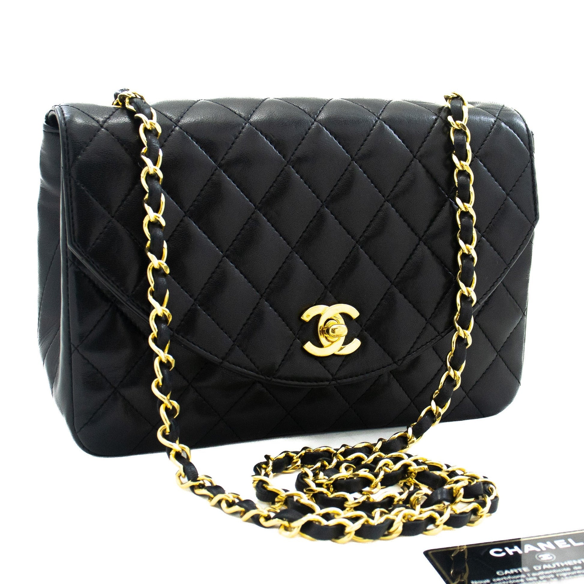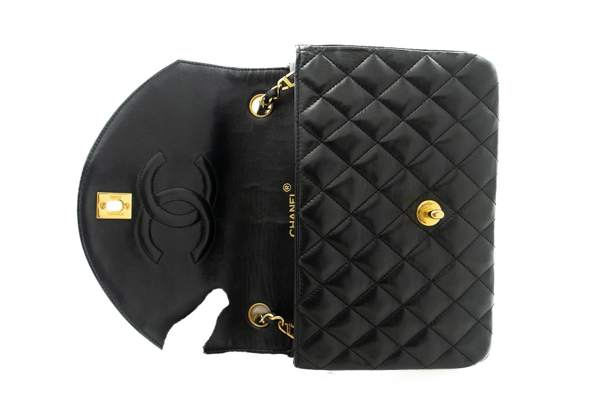 An authentic CHANEL Half Moon Chain Shoulder Bag Crossbody Black Quilted Flap k22 This item is Vintage / Classic. The year of manufacture would be 1989-1991.