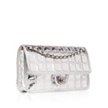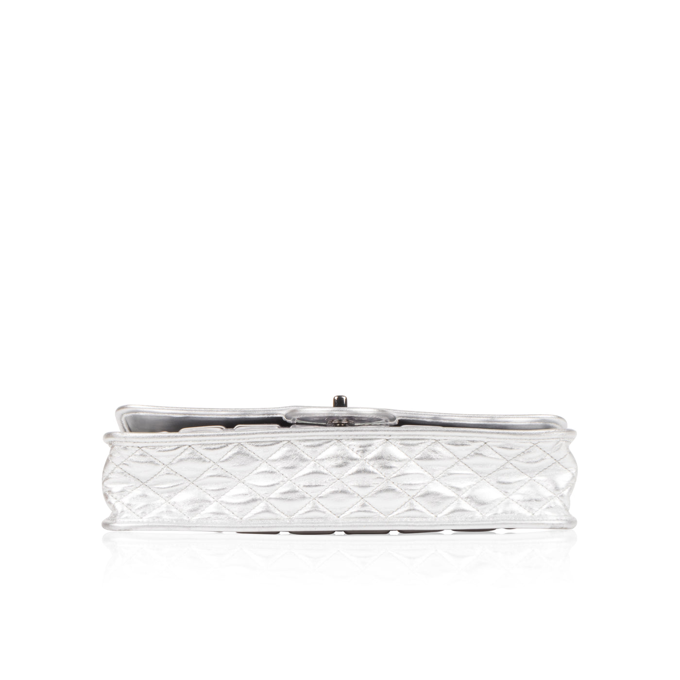 Attention all cool-girls with a love for luxury statement pieces, this is not your mum's Chanel. This metallic classic flap is definitely not your average every day bag, but there's no reason why it can't be. Featuring mirror-like squares emblemed throughout with quilted, silver leather sides, this iconic flap bag perfectly balances the classic and the contemporary. For the modern young women with an edgy sense of style, this classic flap is an absolute must-have. The ideal companion to accompany you on any occasion, dress this gem up with a sleek LBD or down with a pair of black jeans and chunky Chanel sneakers. A bag that will remain timeless, regardless of style or appearance, a classic will stay a classic. Stylish and effortlessly cool, this bag is a well-worthy investment and addition to any luxury handbag collection.