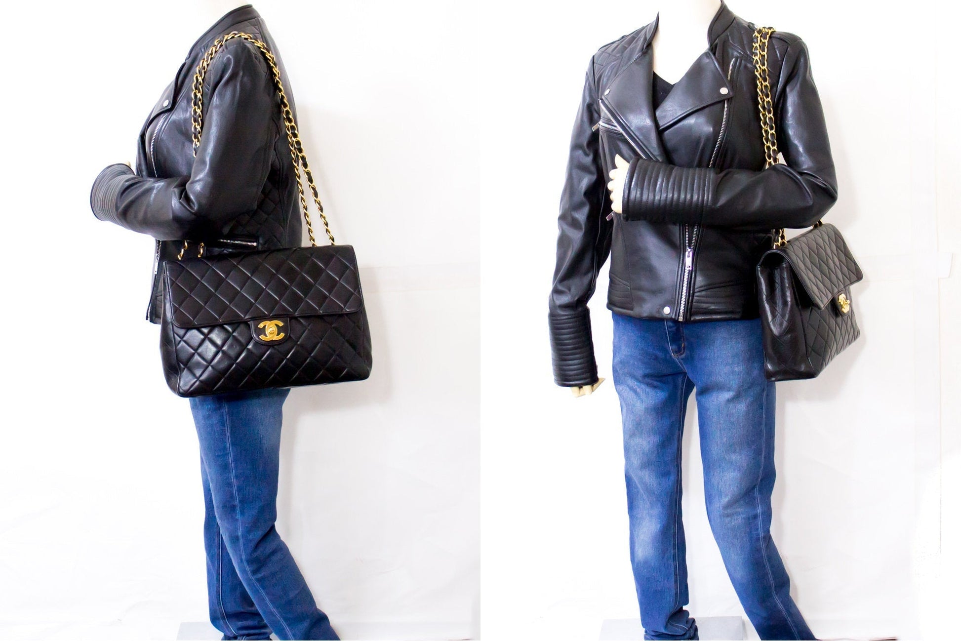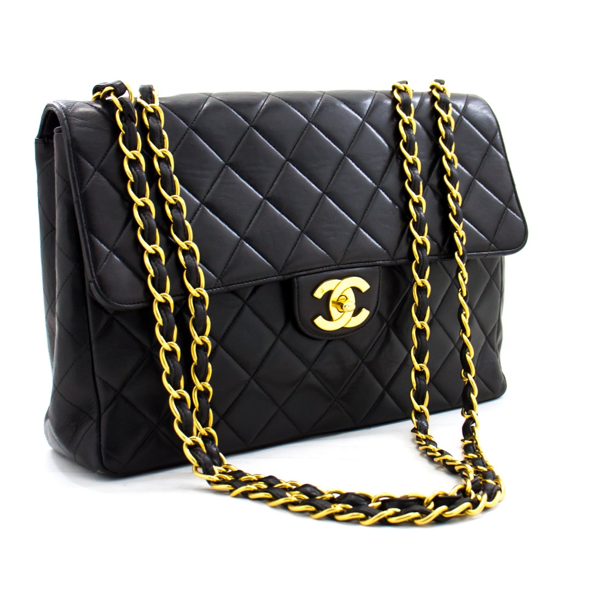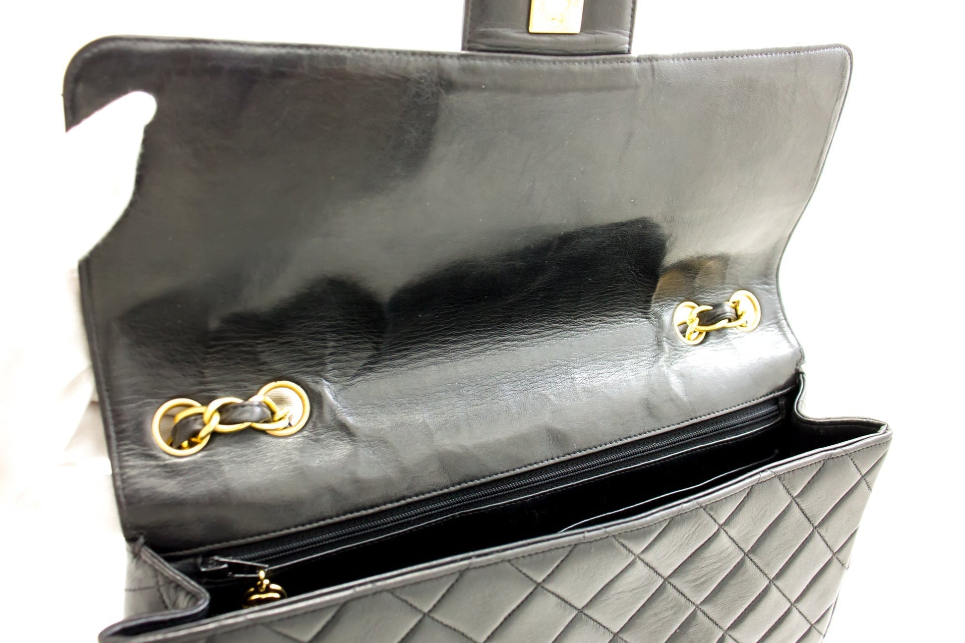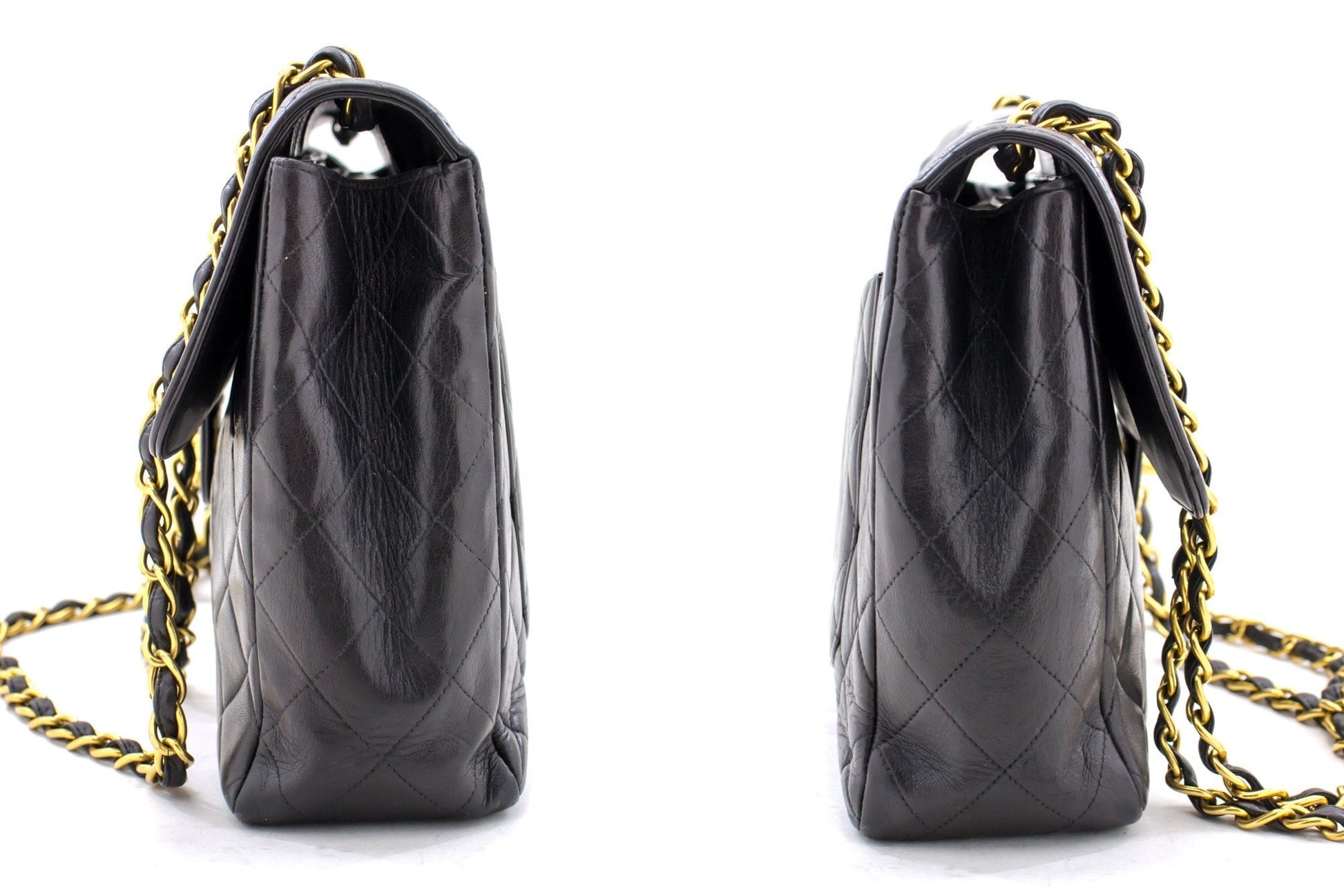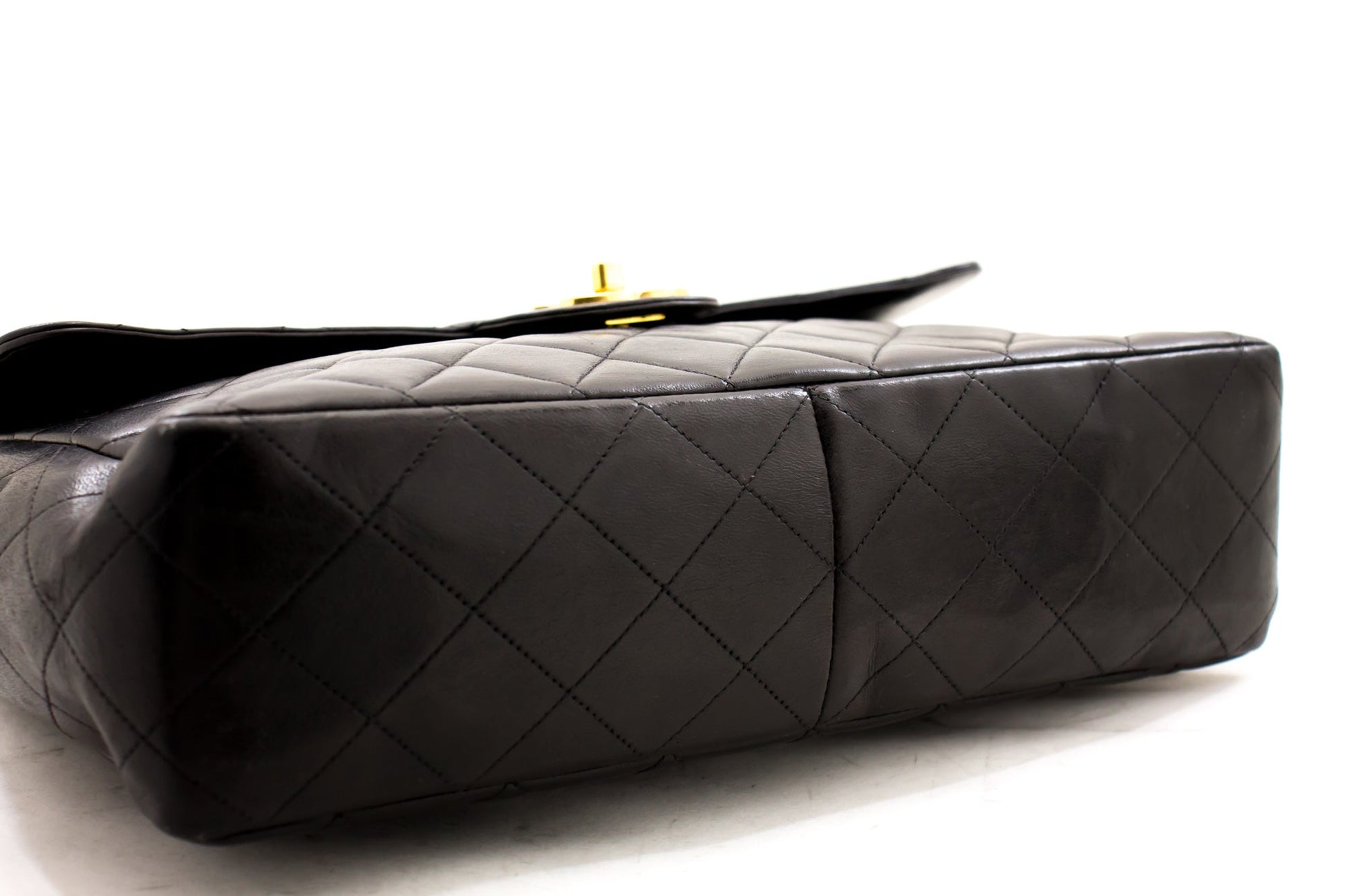 An authentic CHANEL Jumbo 11" Large Chain Shoulder Bag Flap Black made of black Lambskin Gold f35 This item is Vintage / Classic. The year of manufacture would be 1994-1996.