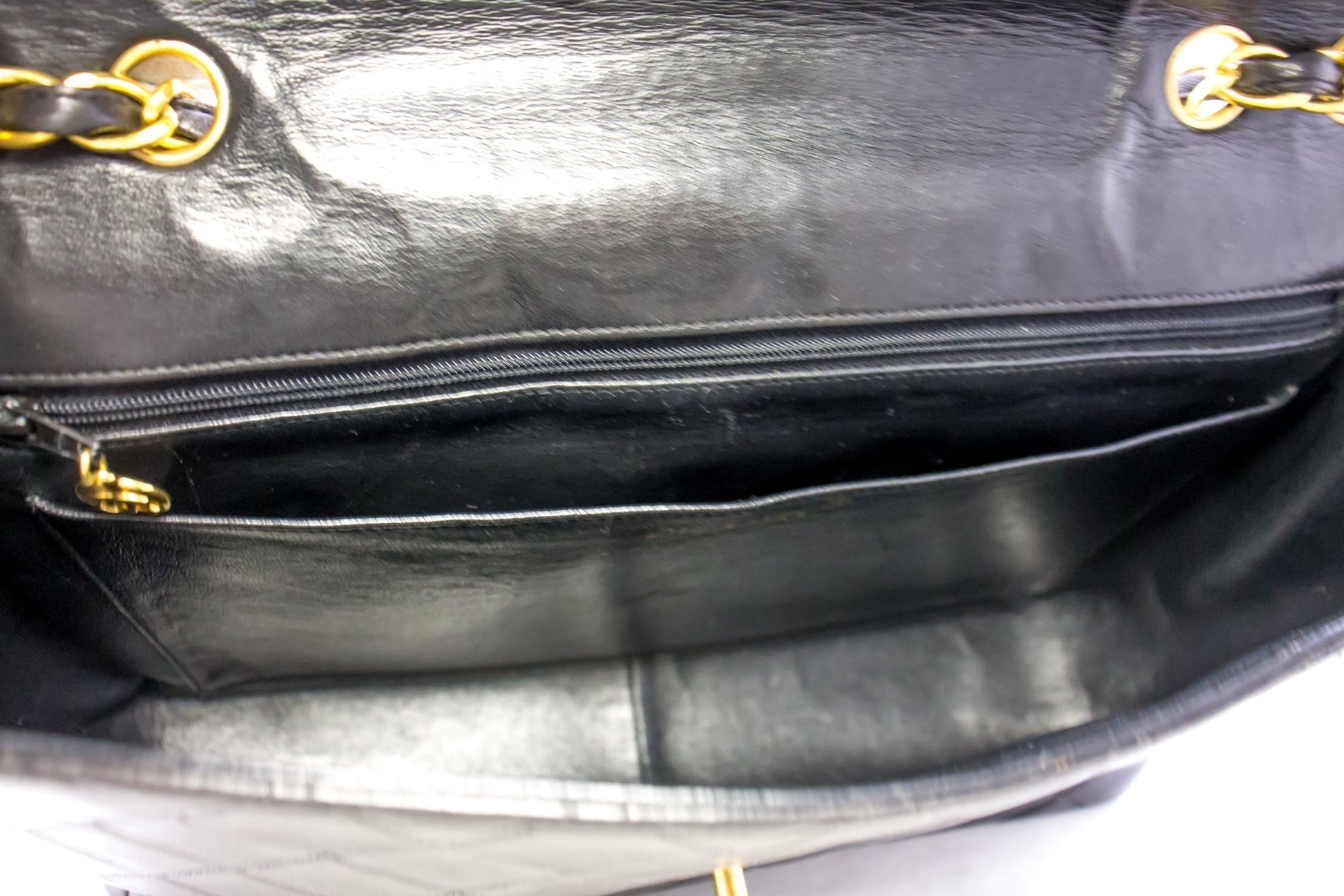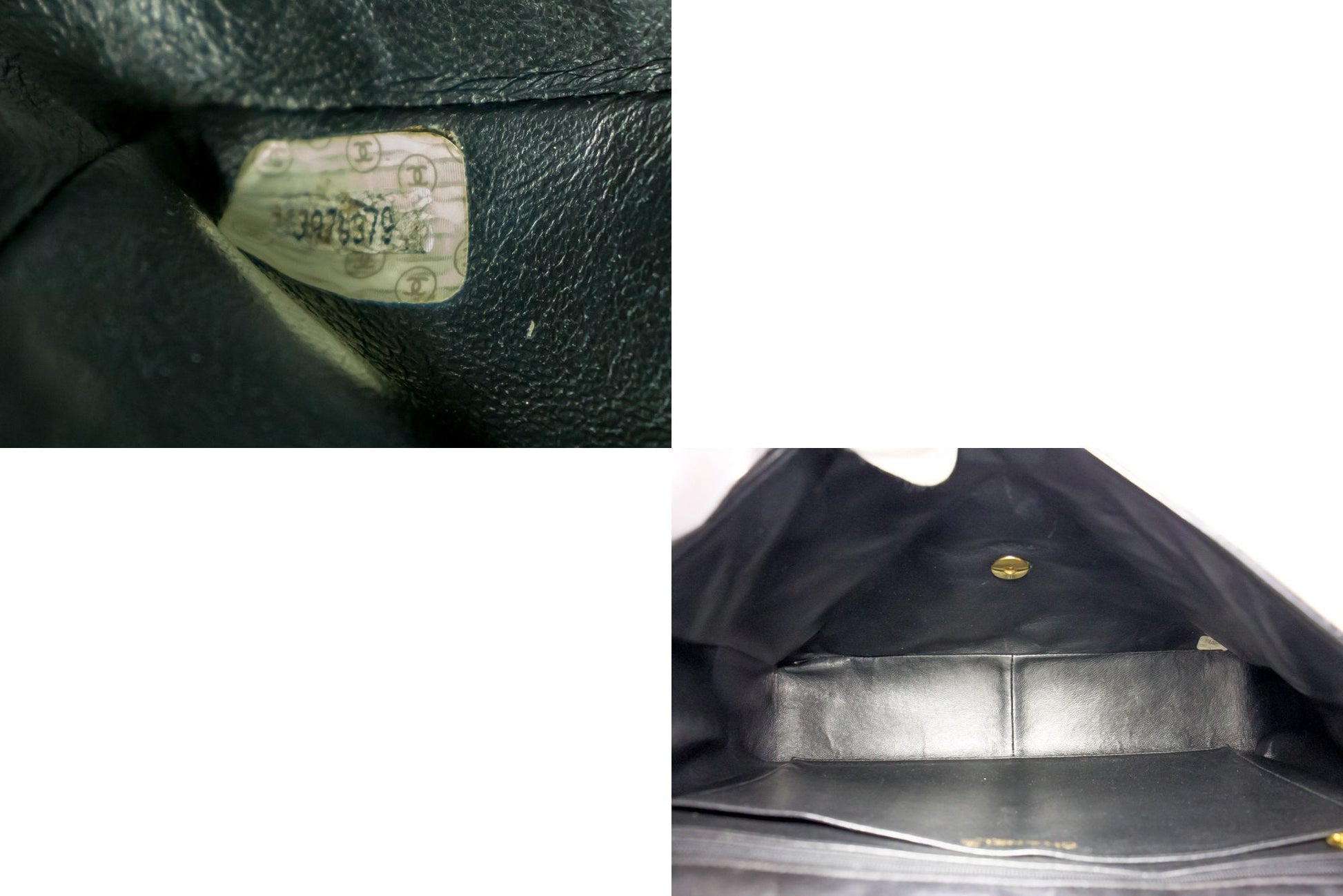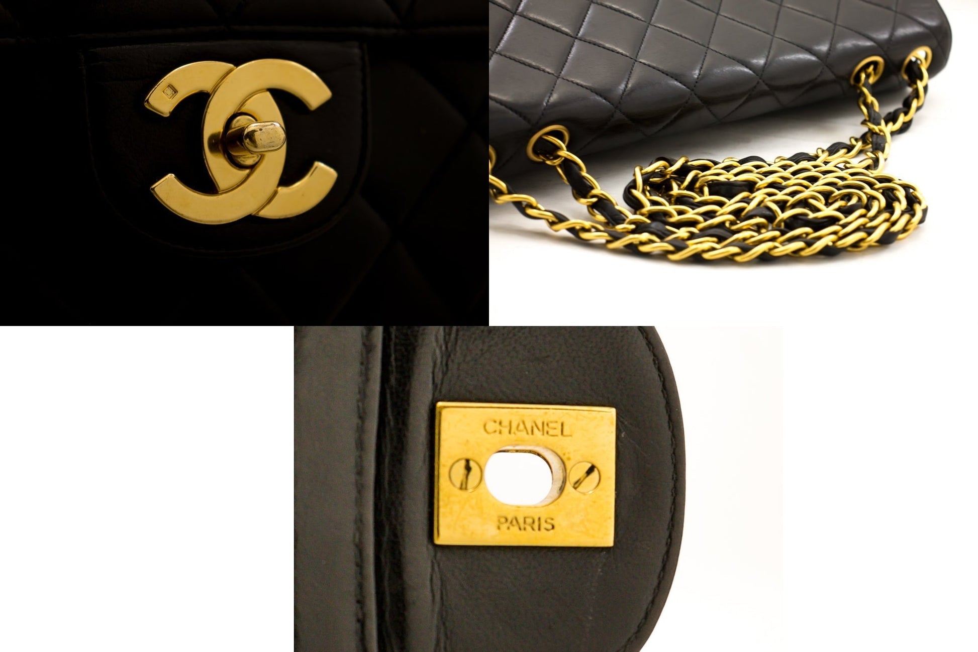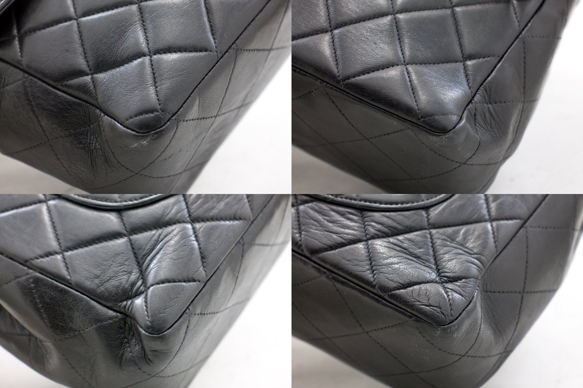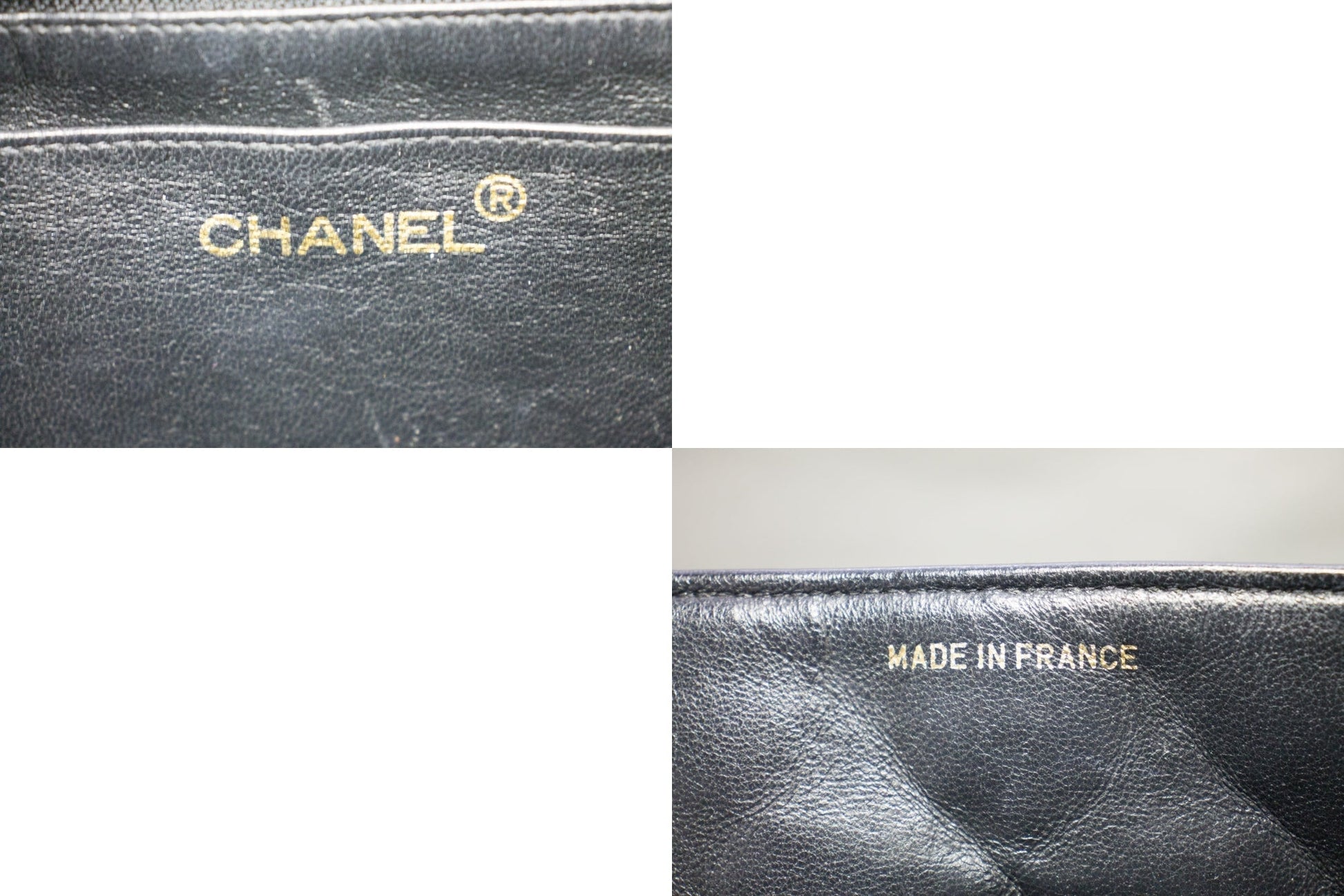 An authentic CHANEL Jumbo 11" Large Chain Shoulder Bag Flap Black made of black Lambskin Gold f35 This item is Vintage / Classic. The year of manufacture would be 1994-1996.