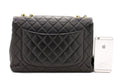 CHANEL Jumbo 11" Large Chain Shoulder Bag Flap Black Lambskin Gold f35