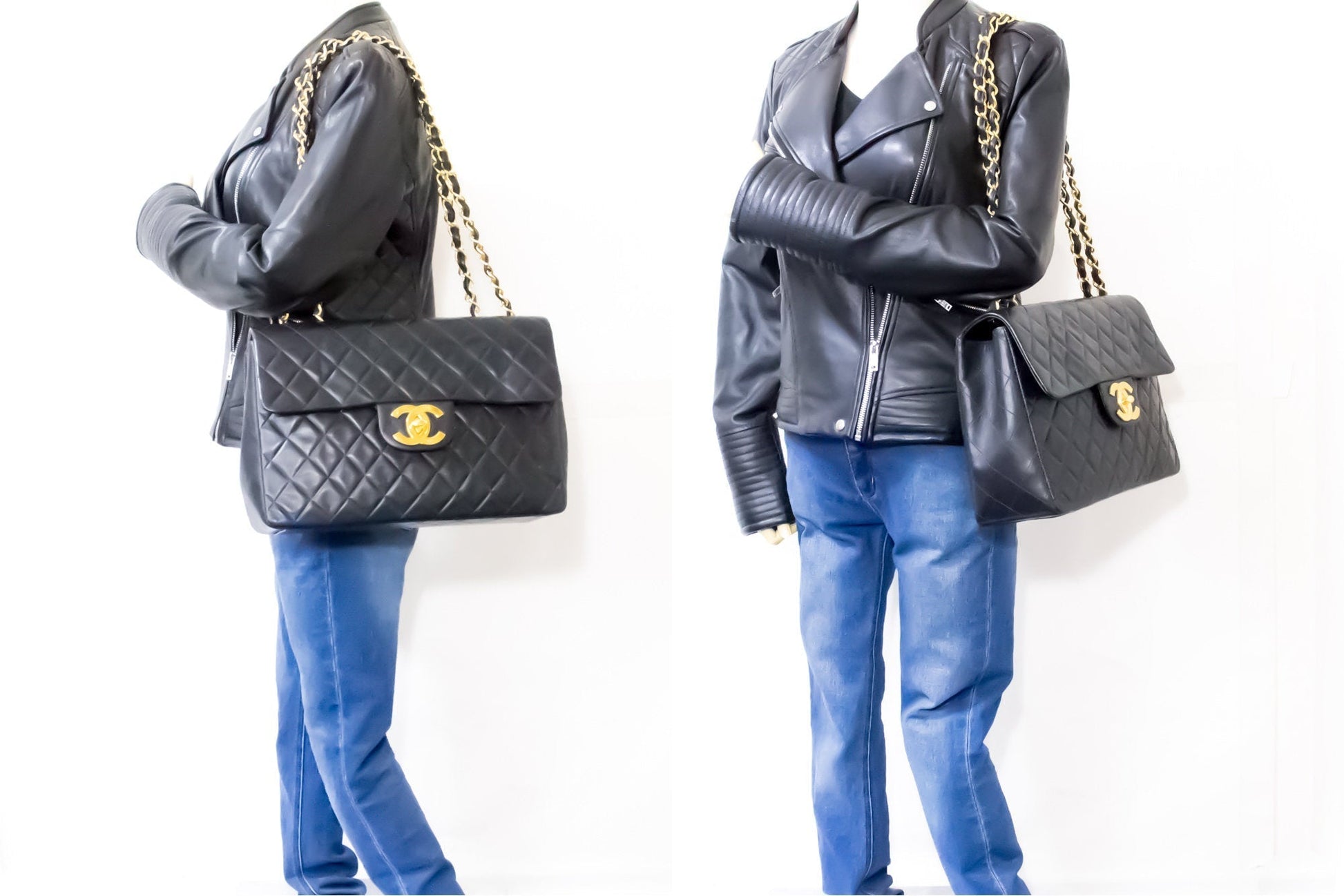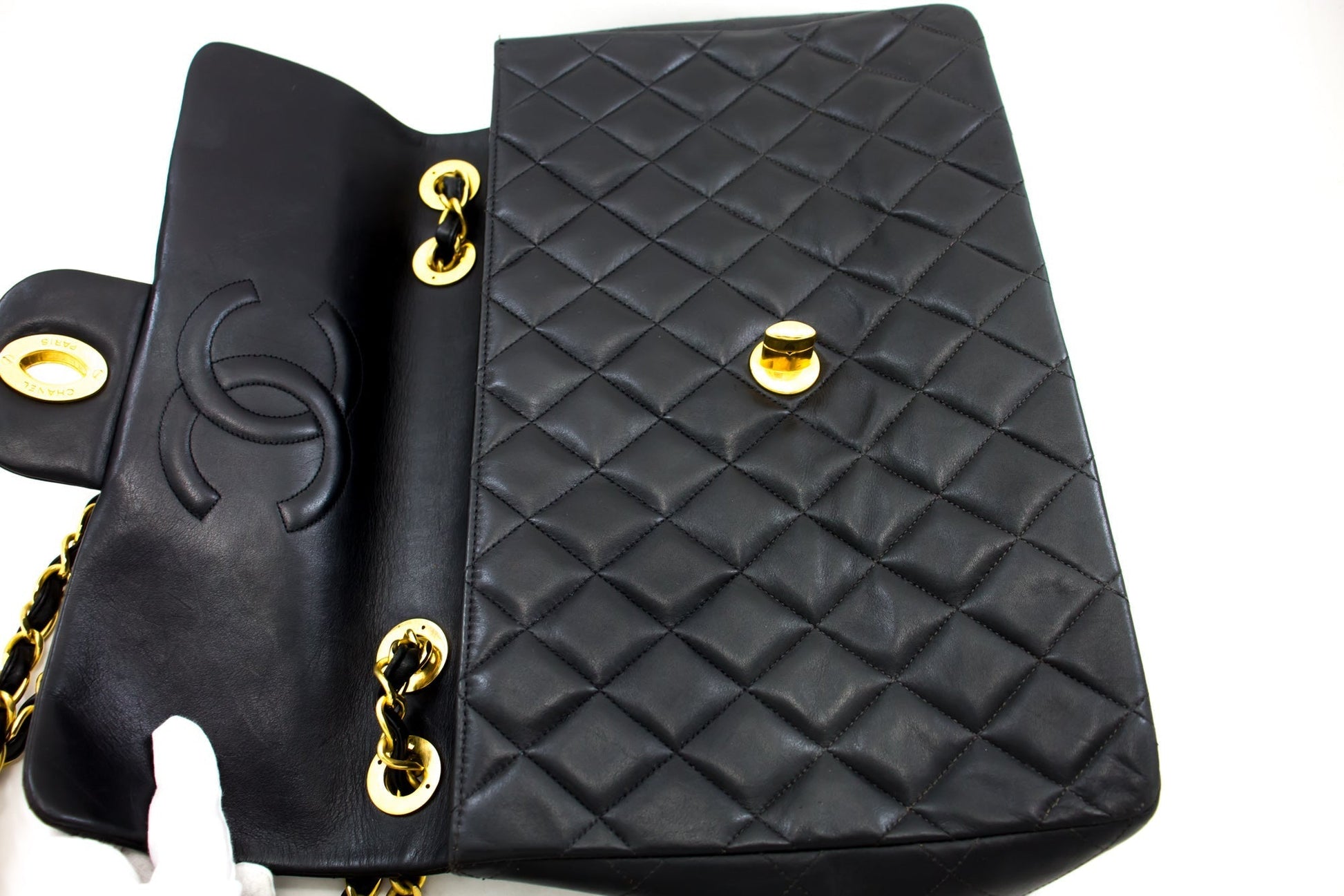 An authentic CHANEL Jumbo 13" 2.55 Flap Chain Shoulder Bag Black made of black Lambskin Large g83 This item is Vintage / Classic. The year of manufacture would be 1994-1996.