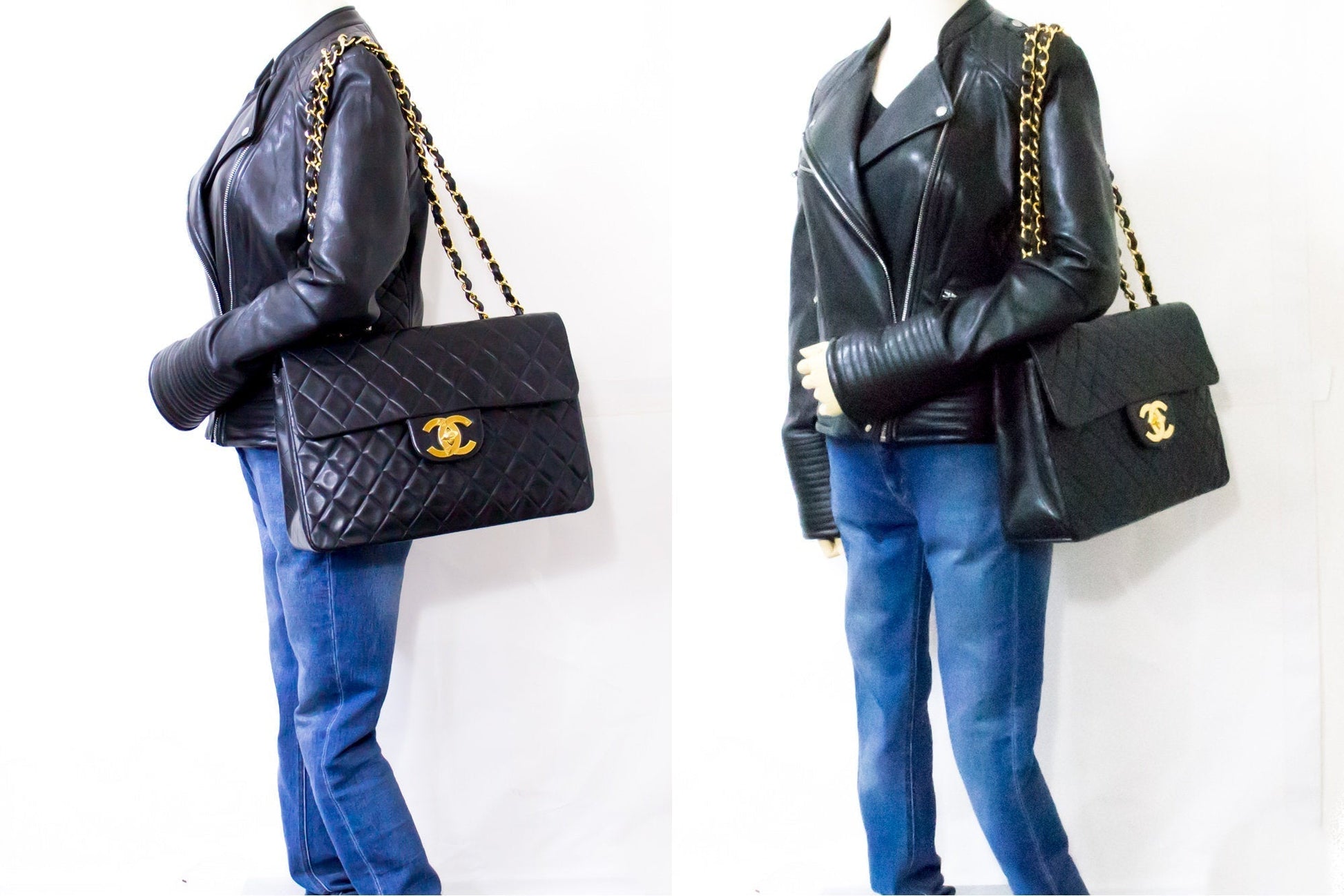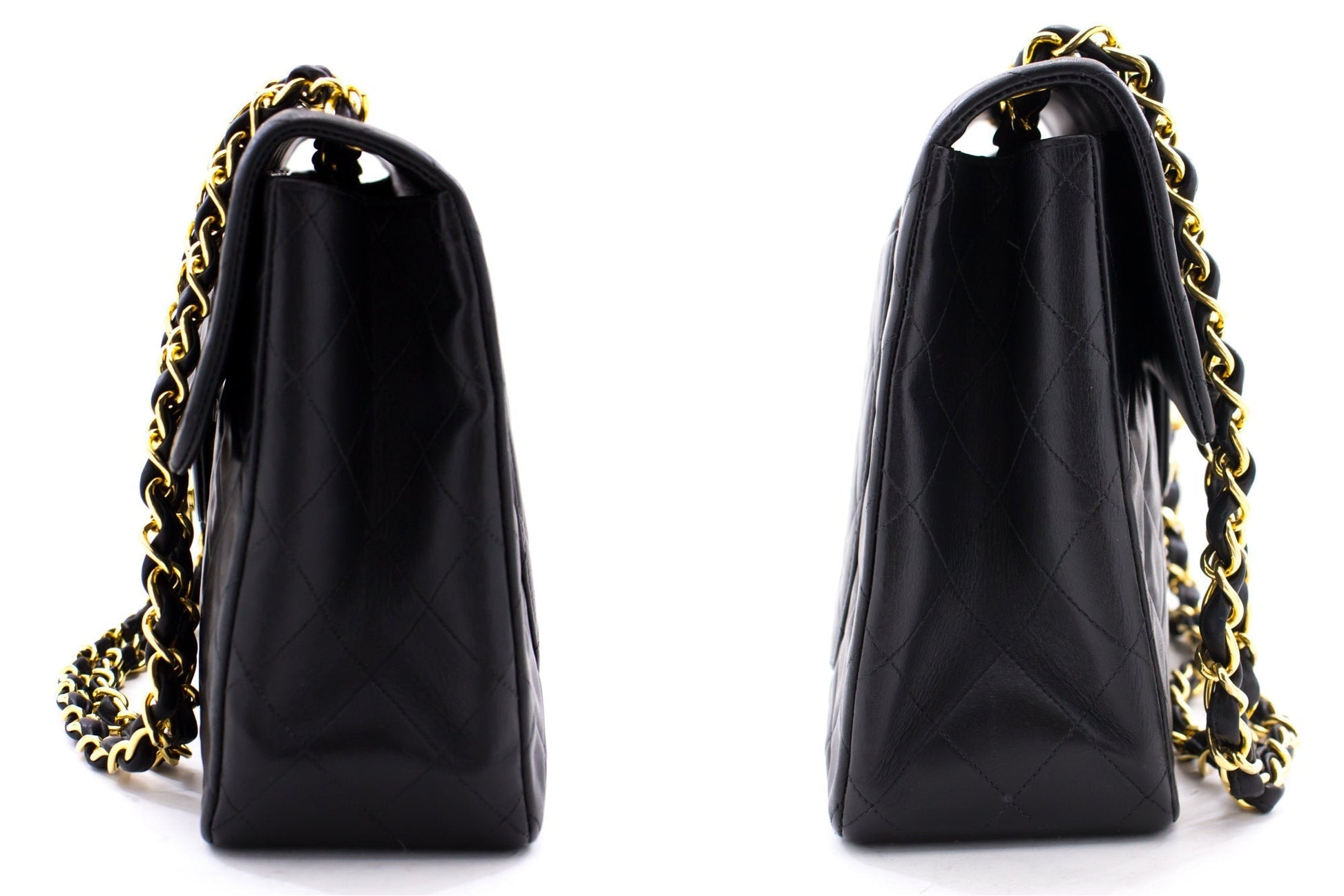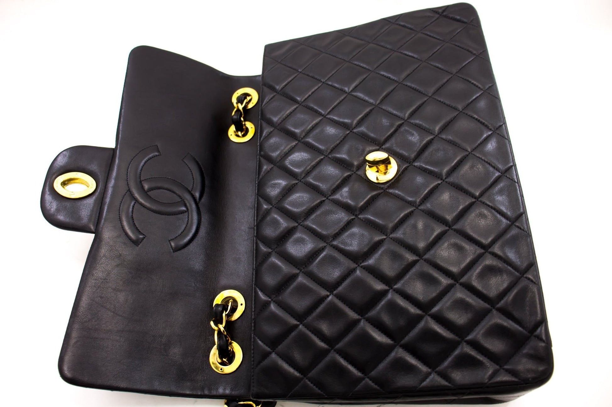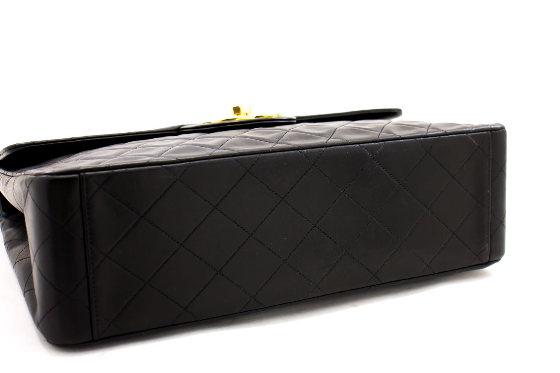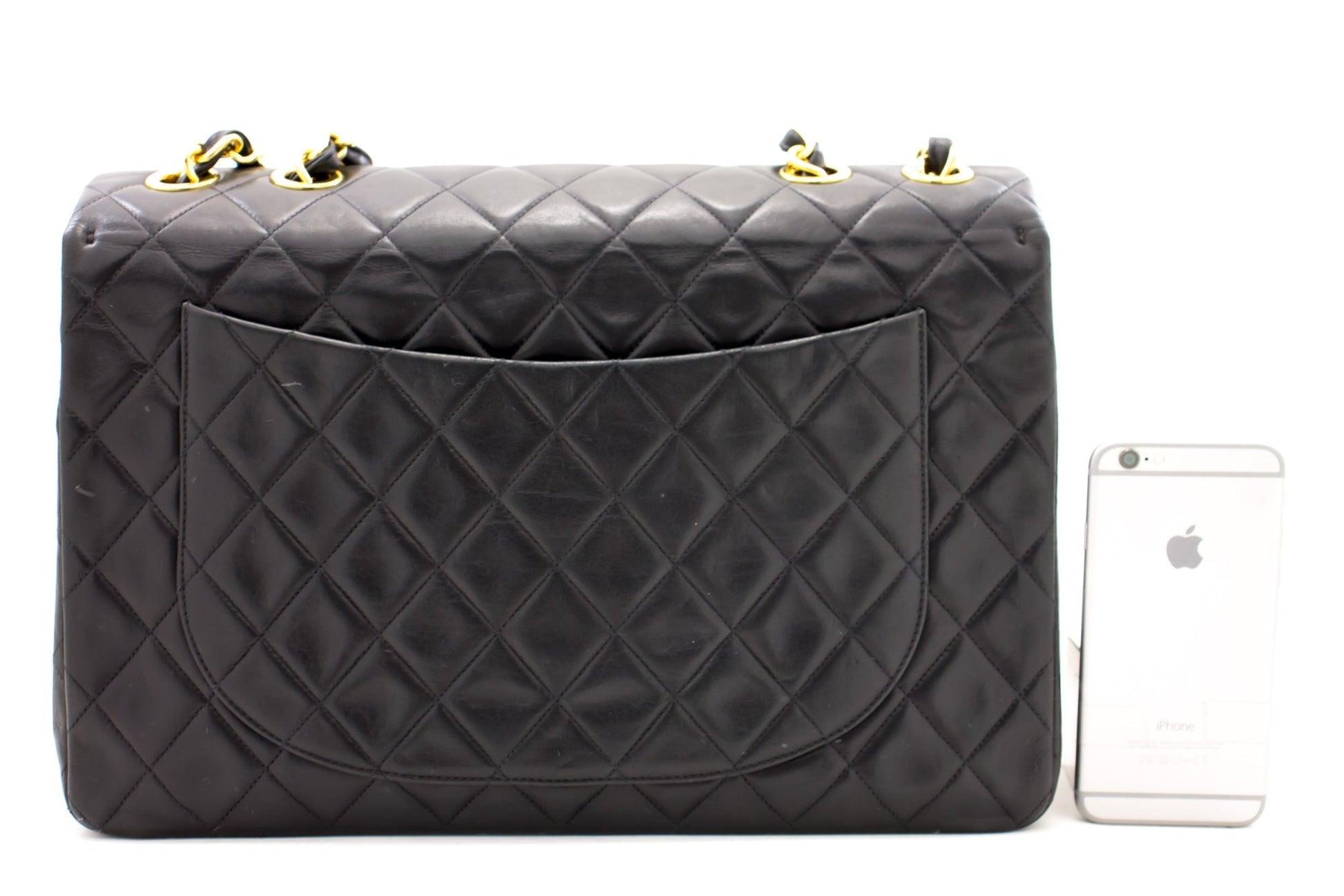 An authentic CHANEL Jumbo 13" Maxi 2.55 Flap Chain Shoulder Bag Black made of black Lambskin d66 This item is Contemporary. The year of manufacture would be 1986.