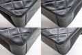 Overall: 8 of 10 - The outside is in excellent condition with minimal signs of use only. Very slight scratches. The inside is also excellent and very clean with very slight scratches. No stickiness or peeling. All chains and hardware are shiny and excellent. Highly recommended!