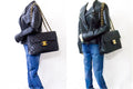 CHANEL Jumbo 13" Maxi 2.55 Flap Chain Shoulder Bag Black Lambskin d66