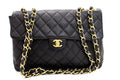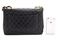 CHANEL Jumbo Caviar 11" Large Chain Shoulder Bag Flap Black Quilt e23
