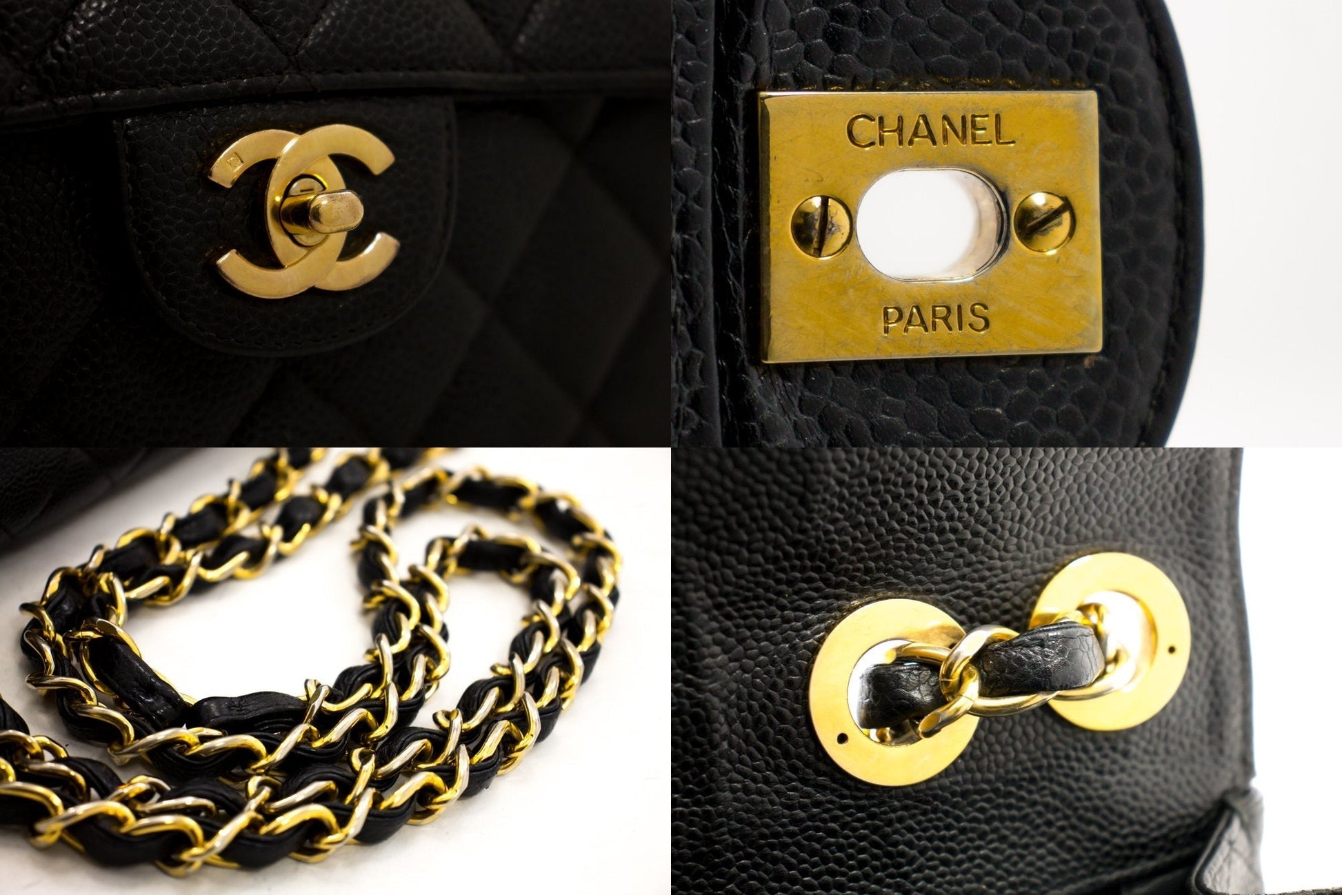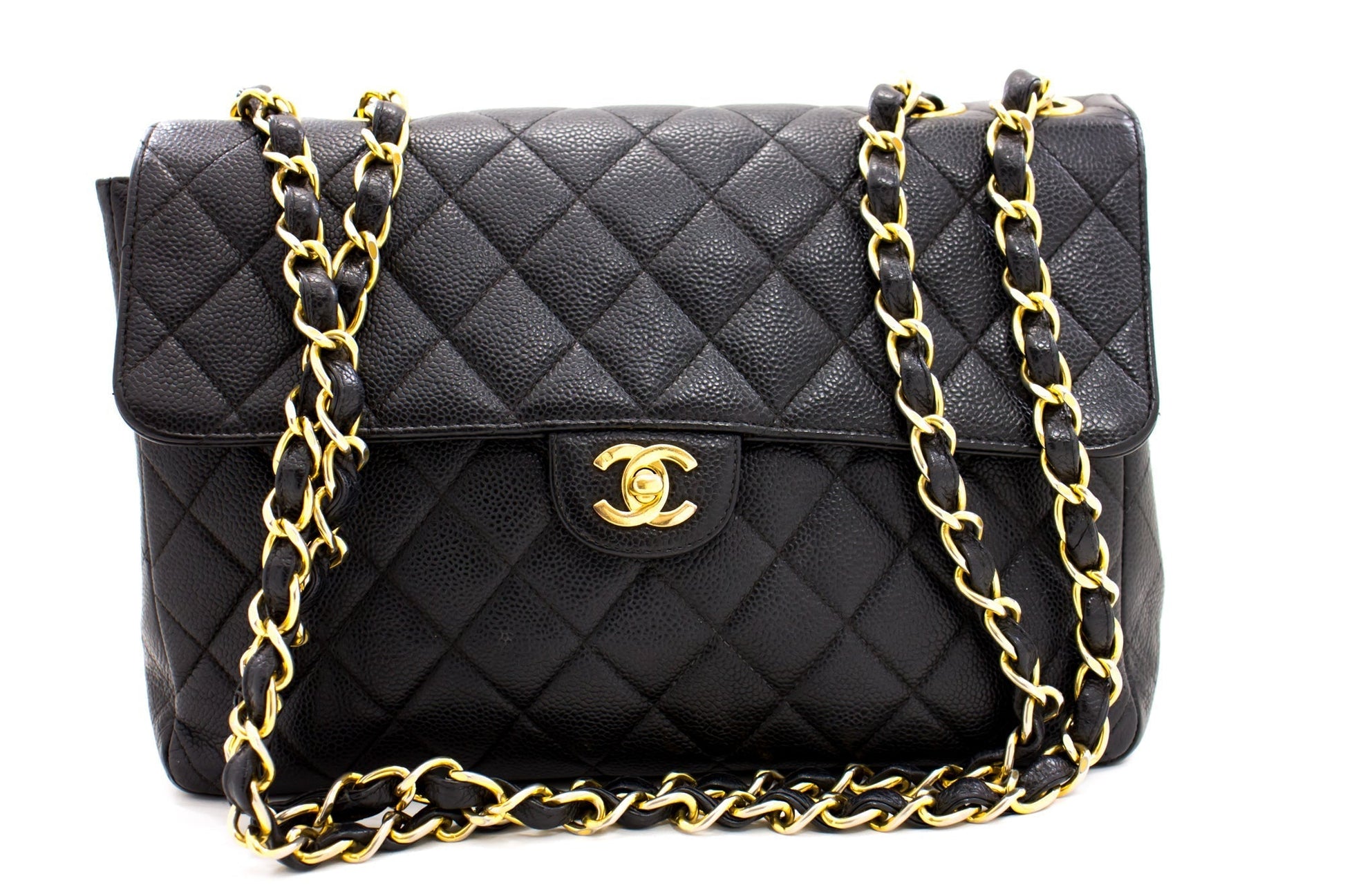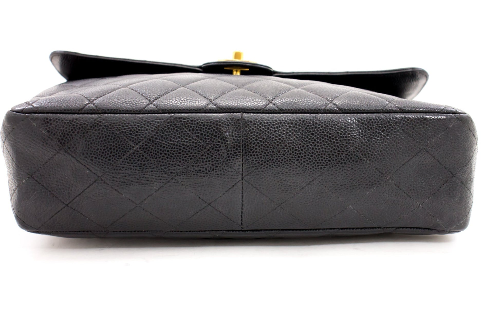 An authentic CHANEL Jumbo Caviar 11" Large Chain Shoulder Bag Flap Black Quilt e23 This item is Contemporary. The year of manufacture would be 2002.