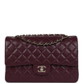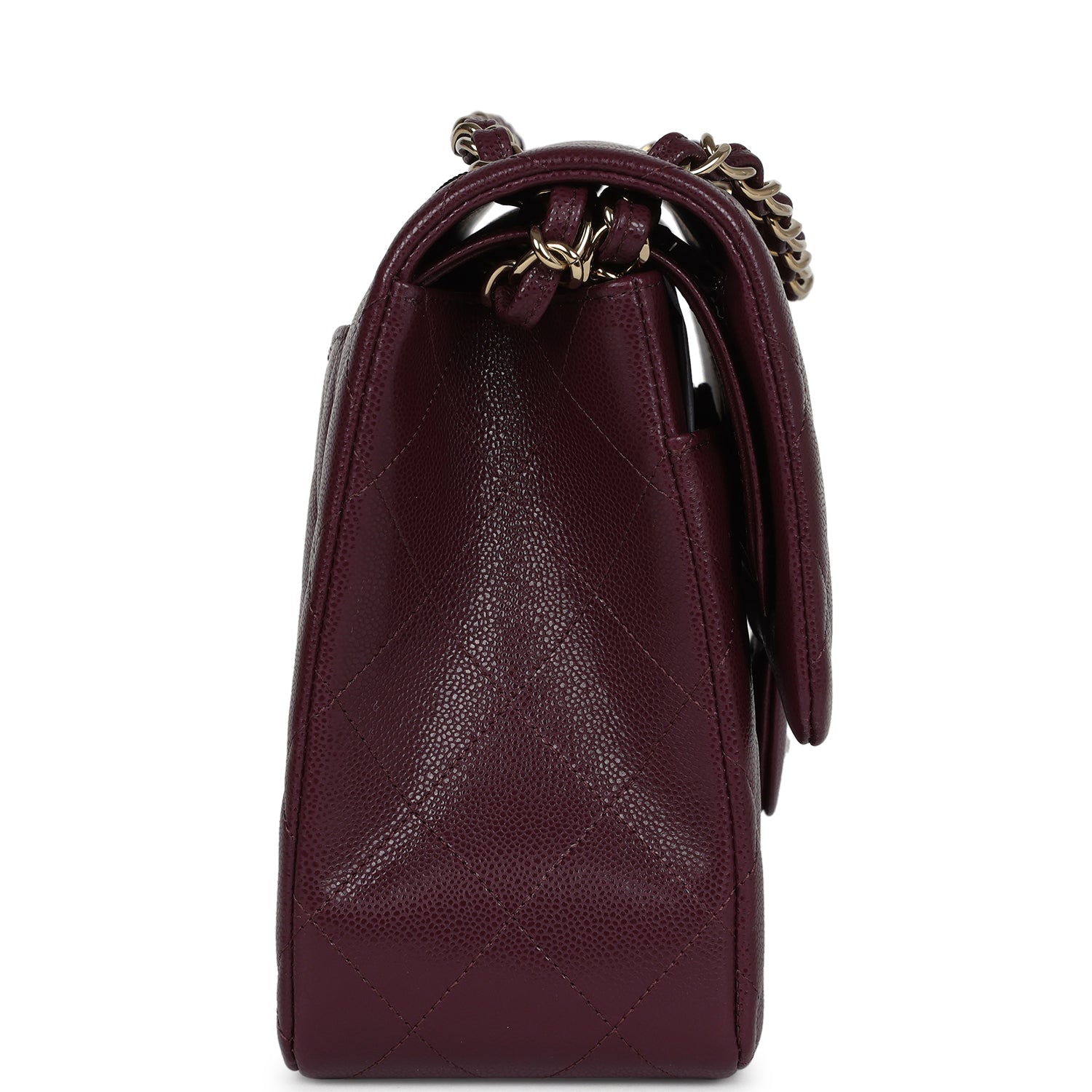 Chanel Jumbo Classic Double Flap Bag Dark Burgundy Shiny Caviar Gold Hardware