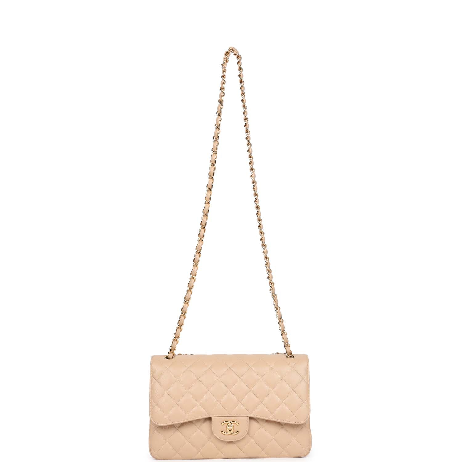 Chanel Jumbo Classic Double Flap Bag Light Beige Caviar Gold Hardware