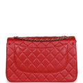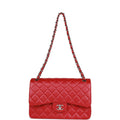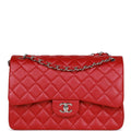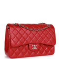 New Chanel Jumbo Classic Double Flap Bag Metallic Red Caviar Silver Hardware