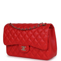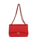 Chanel Jumbo Classic Double Flap Bag Red Lambskin Light Gold Hardware