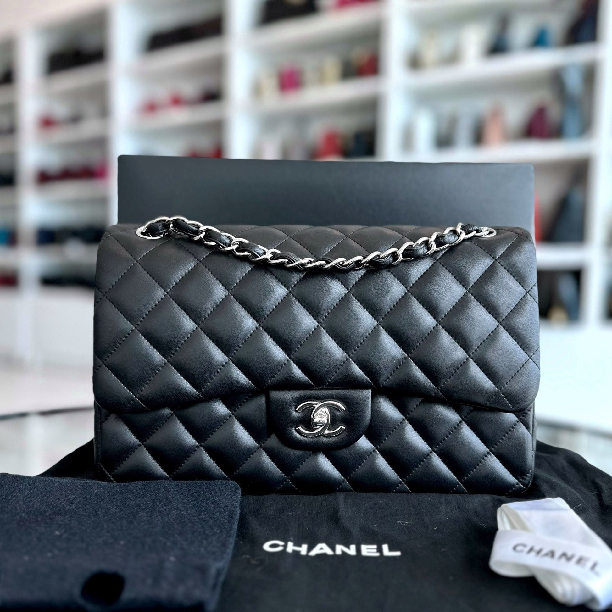 Jumbo Classic Flap Double Flap Quilted Lambskin Black SHW No 18