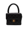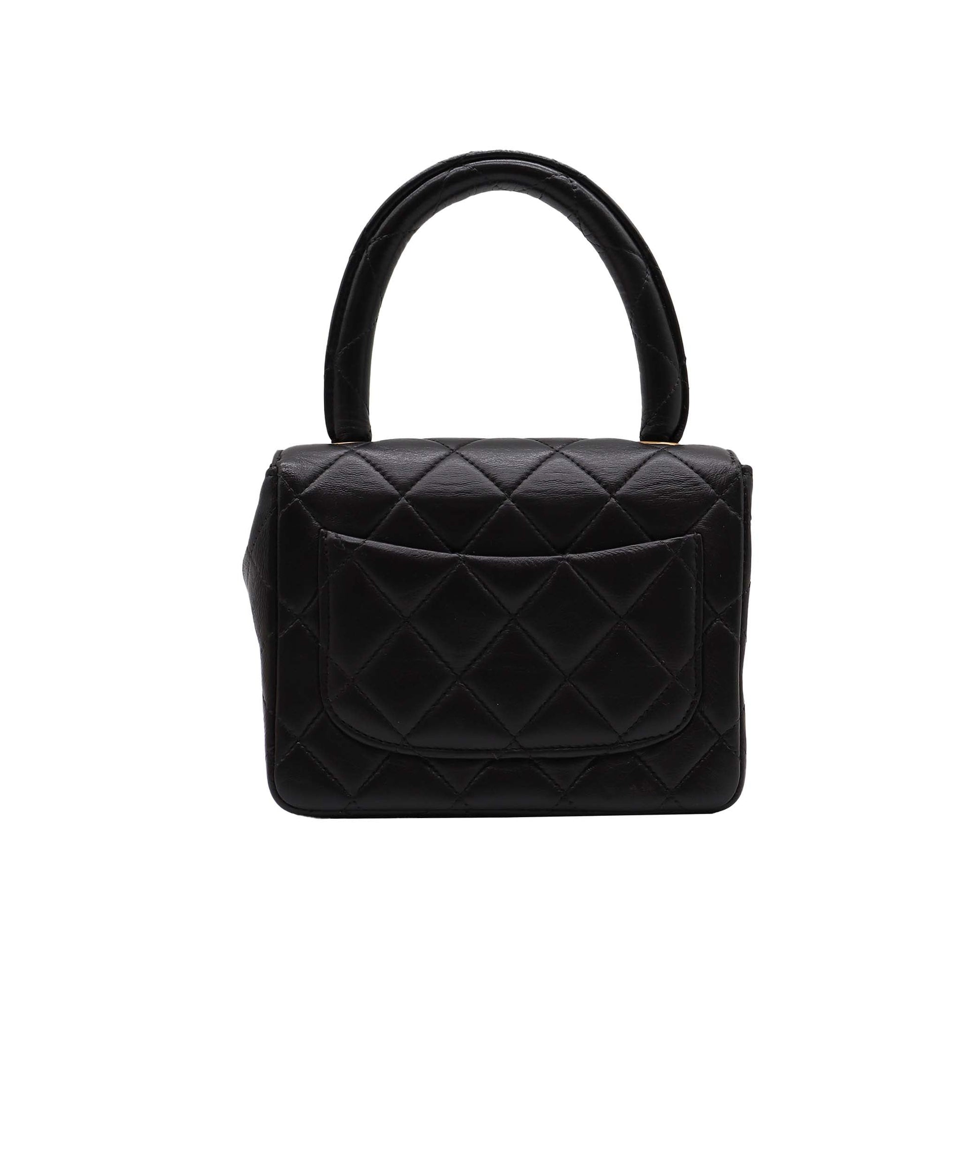 Description: This mini top handle bag features a quilted lambskin leather body, a front flap with CC turnlock closure, and an interior slip pocket.