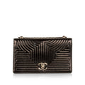 The Korean Garden Flap bag from Chanel is an absolute must-have for any woman with an edgy style and a love for luxury. Crafted from black aged leather featuring chevron-patterned stitching throughout, this stunning black bag is an absolute necessity for any and every occasion. The ideal handbag to the you from day to night, the Korean Garden is a suitable compliment to absolutely anything in your wardrobe. Whether you're a sophisticated in search of a simple but chic bag to throw all your essentials in, then the Korean Garden is the one for you. If you're a contemporary young woman with a fashion-forward, rock n' roll sense of style looking for a cross body bag to accompany you throughout your day, then the Korean Garden party is perfect for you as well. Either way, whoever you are, whatever you do and wherever you're going - this bag is the ideal option. Always sleek and always stylish, you can never go wrong with a Chanel.