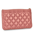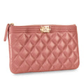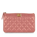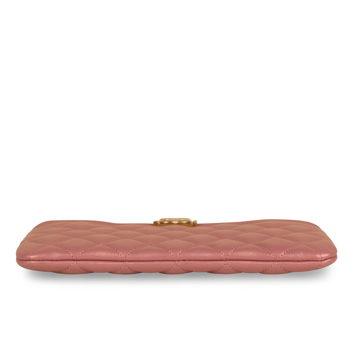 Crafted from Chanel's classic lambskin Leather, Chanel presents their classy and practical case pouch. With the signature CC logo in antique gold tone hardware, this piece is sleek, stylish and sophisticated. Wear this piece with any casual look, from a basic tee and a pair of trousers to black jeans and a simple blouse. The ideal every day clutch, remaining while remaining timeless and fashion forward.
