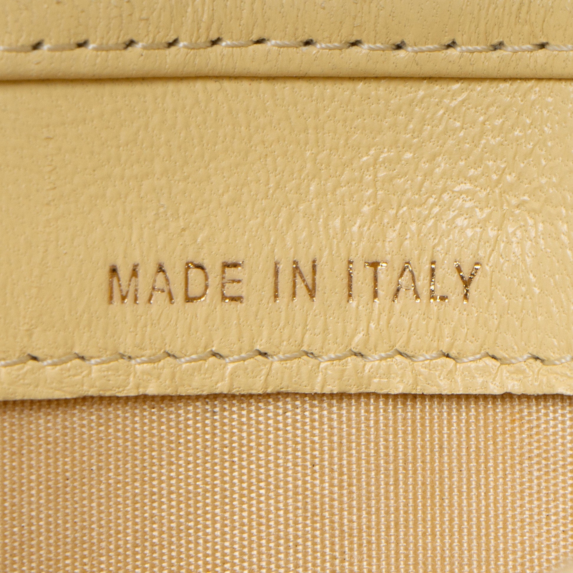 Condition Notes: Light marks and scuffs throughout exterior edges and corners. Light creasing to exterior back. Surface scratches to hardware. Scuffs and wear throughout interior flap. Marks and light darkening throughout interior.