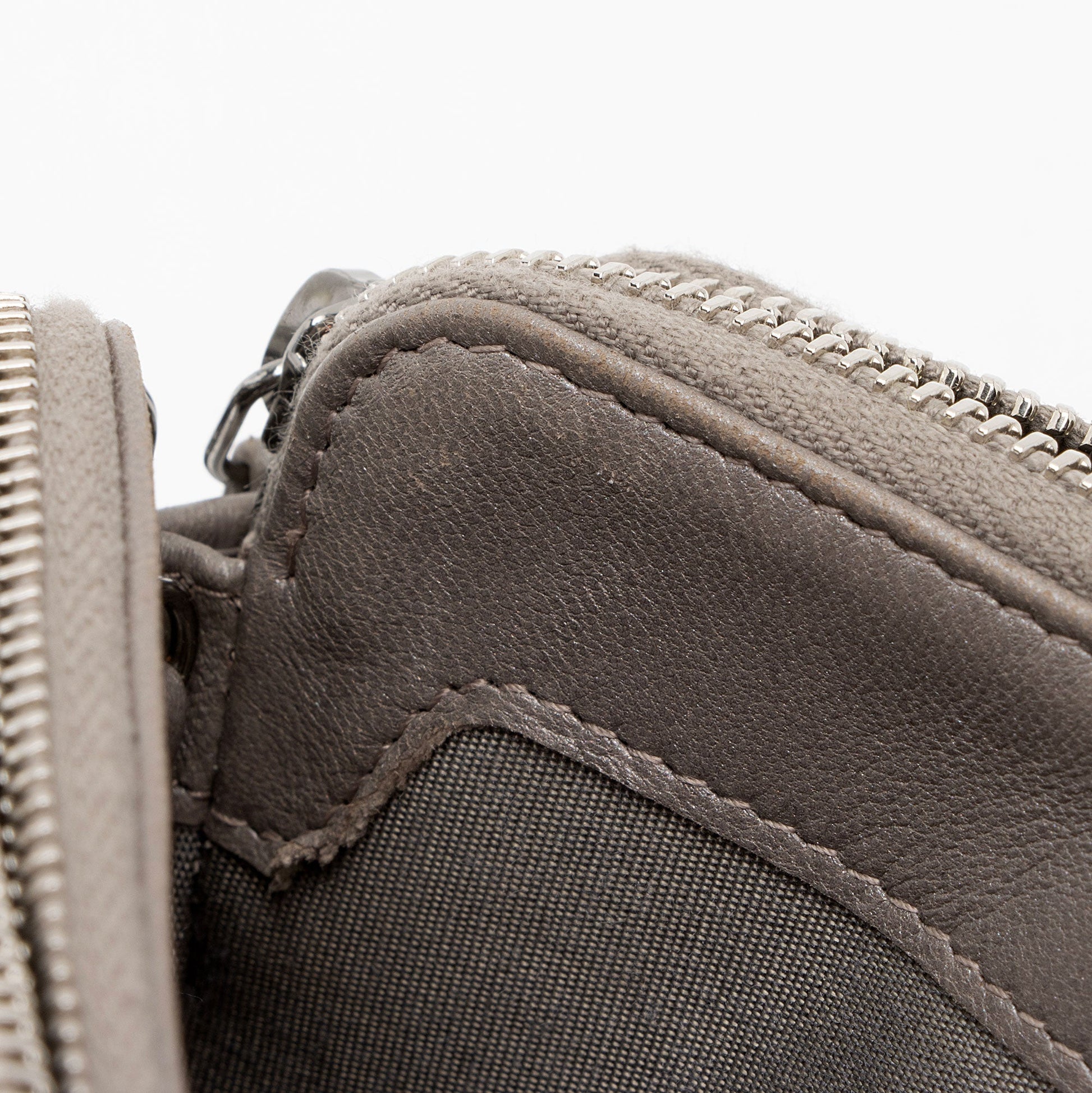 Condition Notes: Visible marks, darkening, and scuffs throughout exterior edges and corners. Light scuffs and darkening throughout exterior. Pilling and wear throughout zipper tape. Light surface scratches to hardware. Visible marks throughout interior.